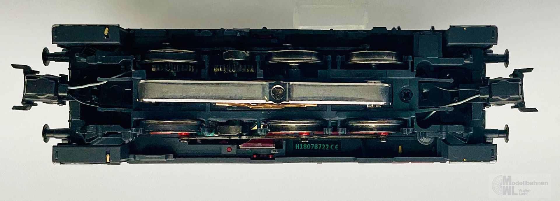 Modell: Mit Digital-Decoder mfx+ und umfangreichen Geräuschfunktionen. Geregelter Hochleistungsantrieb. Drei Achsen und Blindwelle angetrieben. Haftreifen. Telex-Kupplungen vorne und hinten jeweils separat digital schaltbar. Fahrtrichtungsabhängig wechselndes Dreilicht-Spitzensignal konventionell in Betrieb, digital schaltbar. Doppel-A-Licht schaltbar. Bühnengeländer aus Metall. Länge über Puffer 12,0 cm.