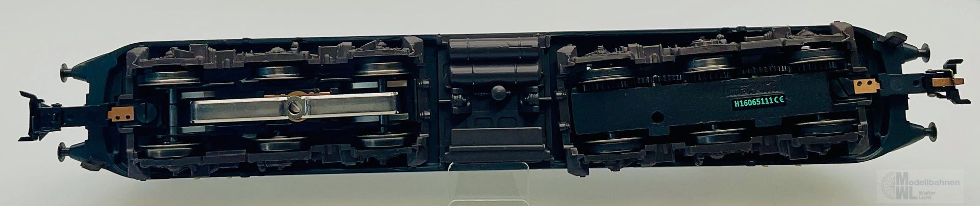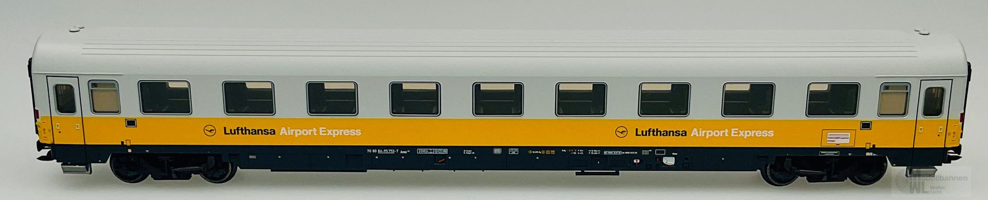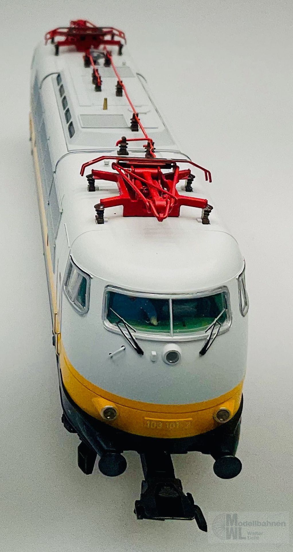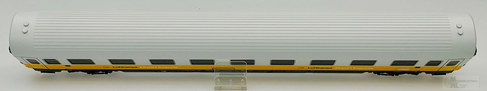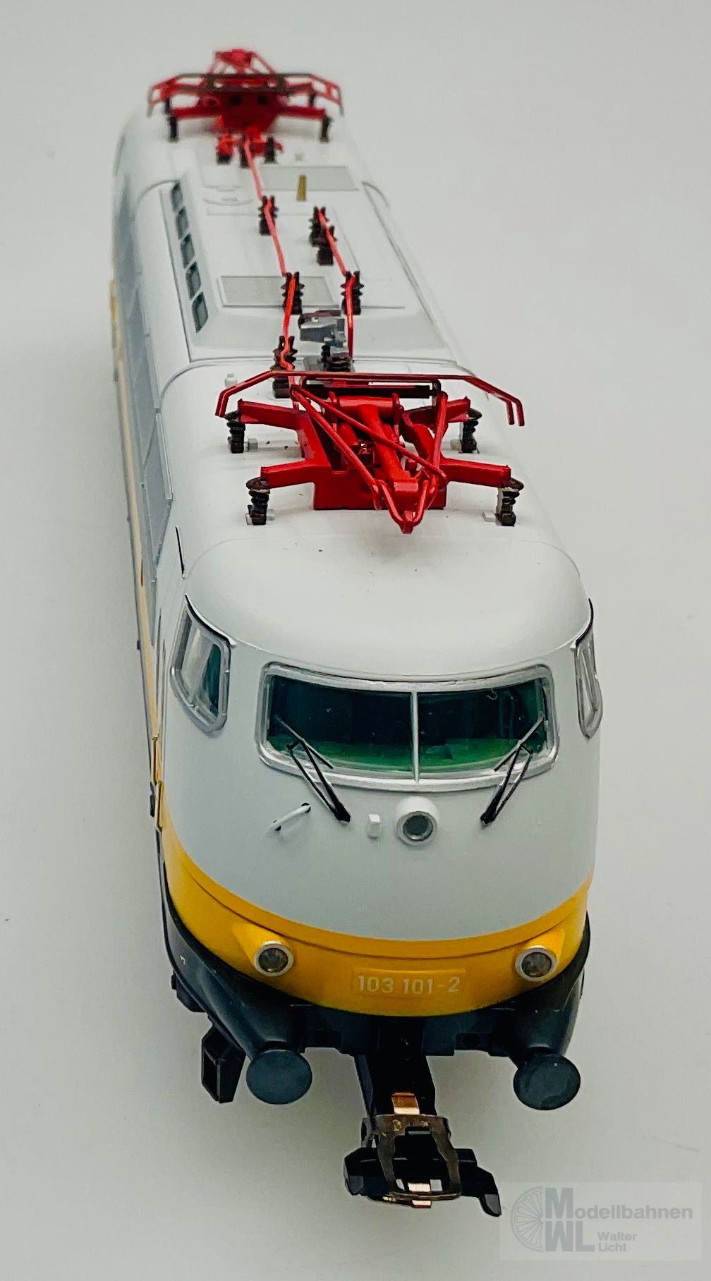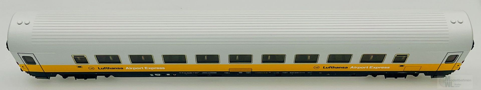 Modell: Elektrolokomotive BR 103 mit Digital-Decoder mfx+ und umfangreichen Geräuschfunktionen. Geregelter Hochleistungsantrieb. Drei Achsen angetrieben. Haftreifen. Fahrtrichtungsabhängig wechselndes Dreilicht-Spitzensignal und zwei rote Schlusslichter konventionell in Betrieb, digital schaltbar. Spitzensignal an Lokseite 2 und 1 jeweils digital separat abschaltbar. Wenn Spitzensignal an beiden Lokseiten abgeschaltet ist, dann beidseitige Funktion des Doppel-A-Lichtes. Maschinenraumbeleuchtung digital schaltbar. Zusätzlich kann die Führerstandsbeleuchtung digital geschaltet werden. Beleuchtung mit wartungsfreien warmweißen und roten Leuchtdioden (LED). Strom führende Kupplung digital schaltbar. Abteilwagen und Großraumwagen mit typspezifisch gestaltetem Unterboden. Avmz 106 mit Fiat-Drehgestelle Y 0270 S mit Schlingerdämpfer. Bpmz mit Drehgestelle MD ohne Generator. Bauliche Merkmale druckertüchtigter Wagen wie bspw. SIG-Übergänge, Einstiegstüren und Fenster. Alle Wagen mit serienmäßig eingebauter LED Innenbeleuchtung, über die Lok digital schaltbar. Strom führende trennbare Kupplungen. Ein Wagen mit eingebauter Zugschlussbeleuchtung. Gesamtlänge über Puffer ca. 107 cm.