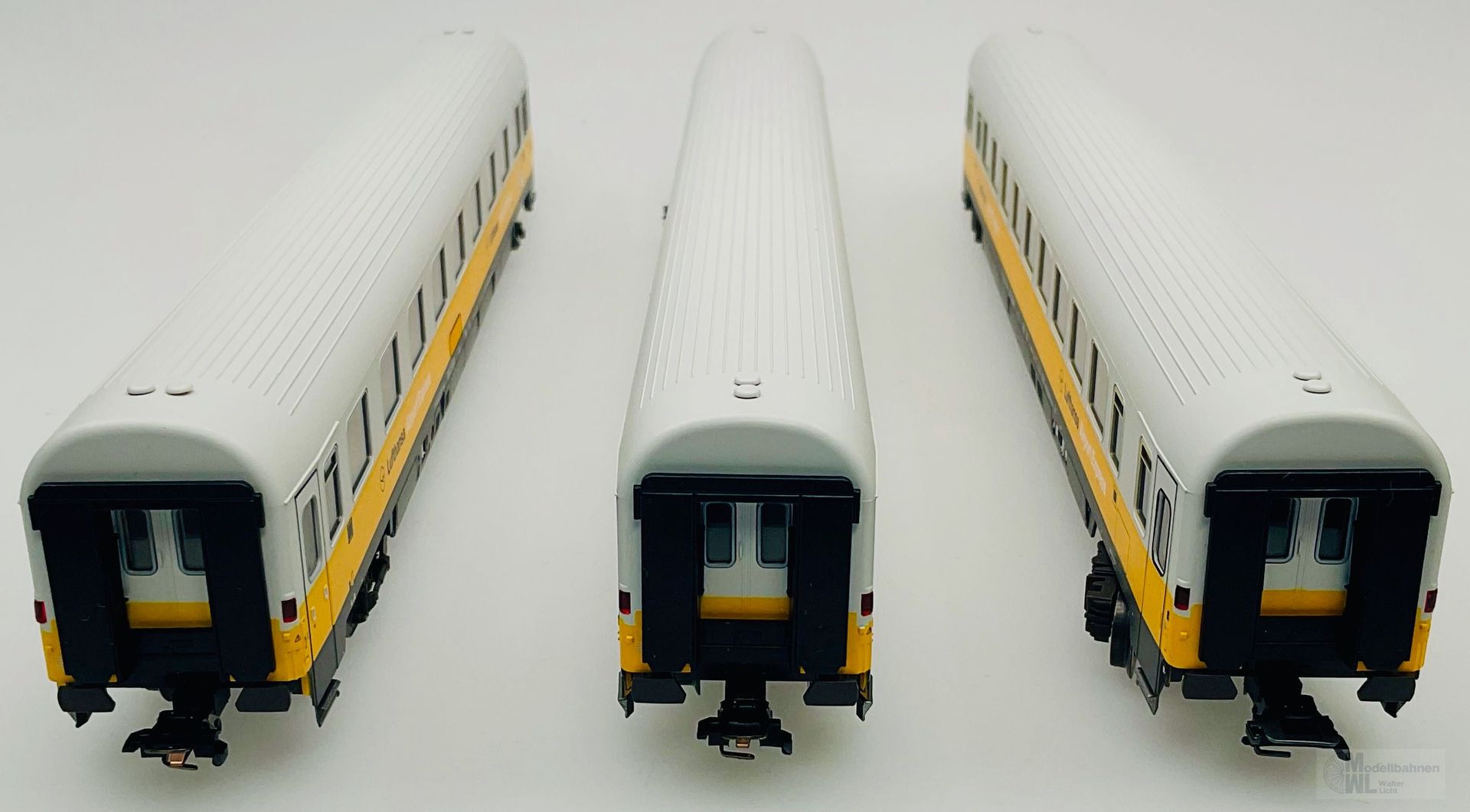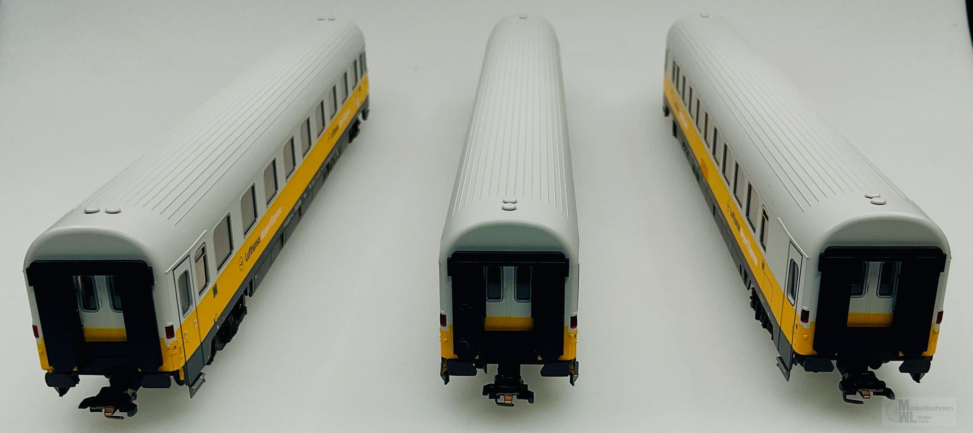 Alle Wagen mit serienmäßig eingebauter LED Innenbeleuchtung, über die Lok digital schaltbar.
