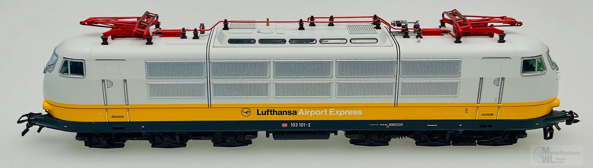 Produktinformationen "Märklin 26680 - MÄRKLIN - Lufthansa Airport Express DB Ep.V BR 103 + 3 Wagen H0/WS Sound"