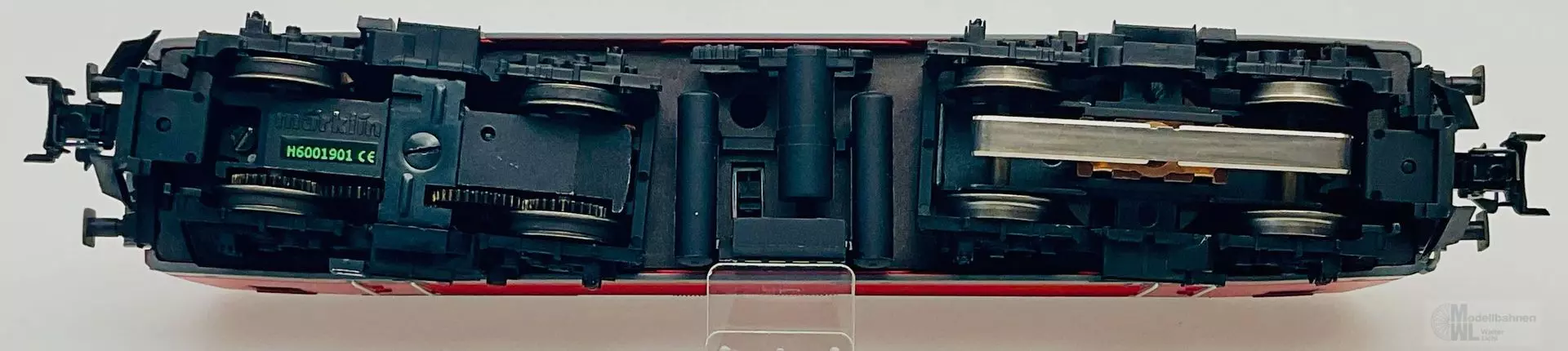 Modell: Lokomotive in aktueller verkehrsroter Grundfarbgebung mit eckigen Puffern und eckigen Dachkanten. Mit mfx-Decoder und geregeltem Hochleistungsantrieb. 2 Achsen angetrieben. Haftreifen. Führerstände mit Inneneinrichtung. Fahrtrichtungsabhängig wechselndes 3-Licht-Spitzensignal und 2 rote Schlusslichter konventionell in Betrieb, digital schaltbar. Länge über Puffer 19,1 cm.