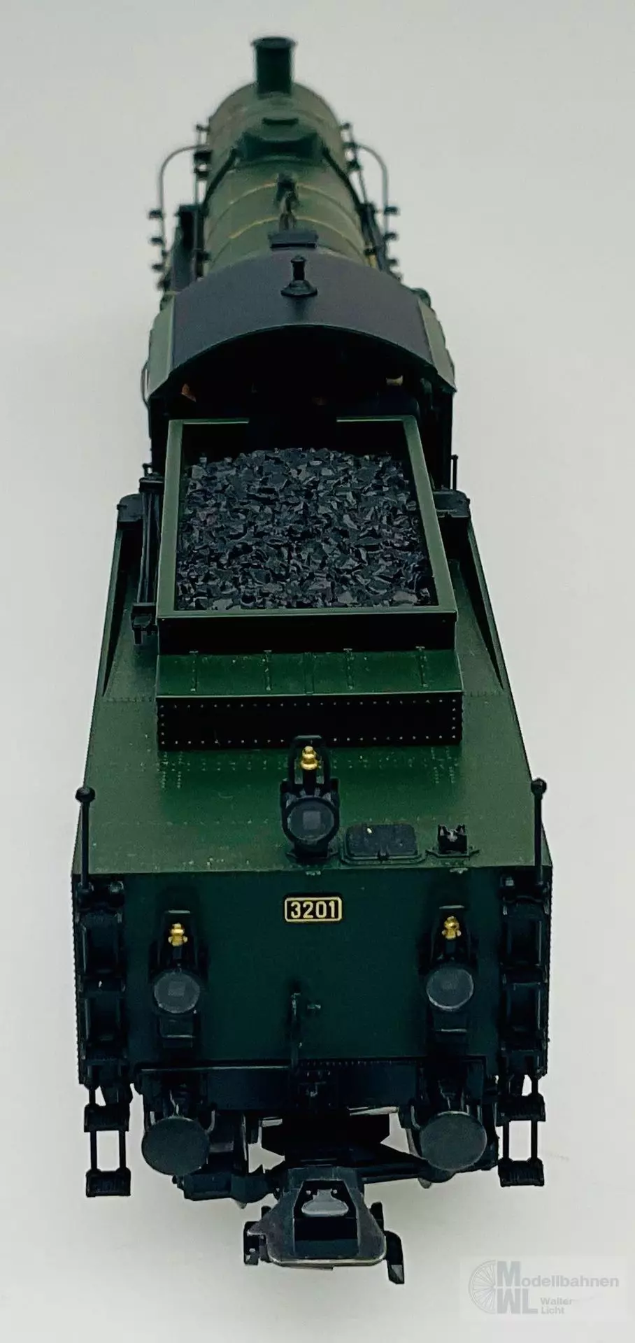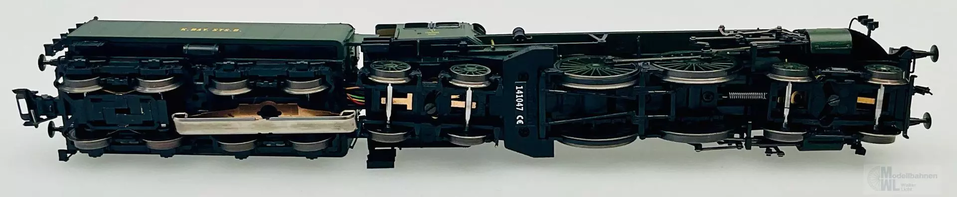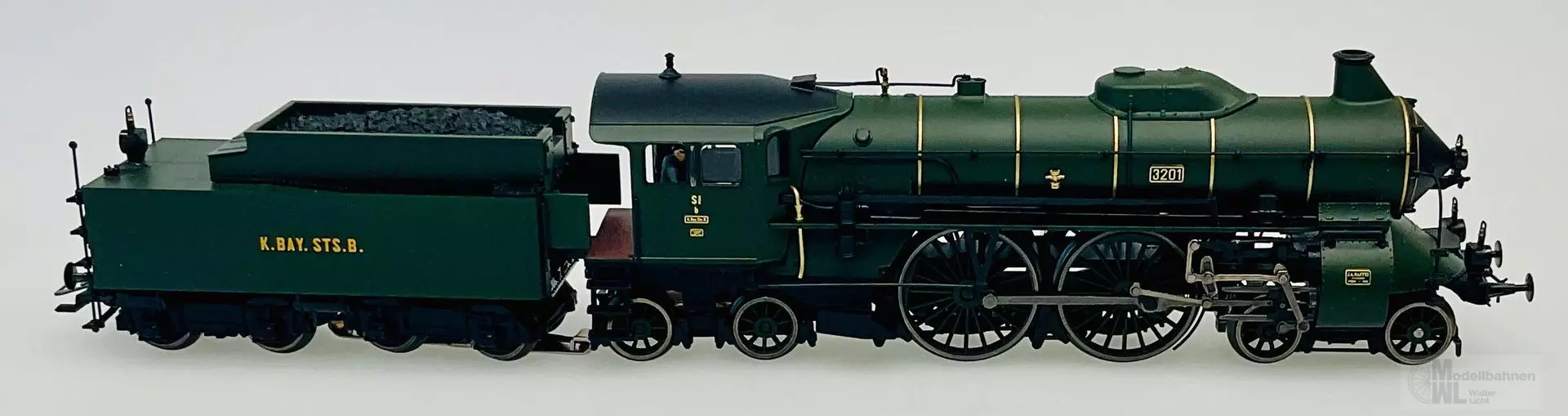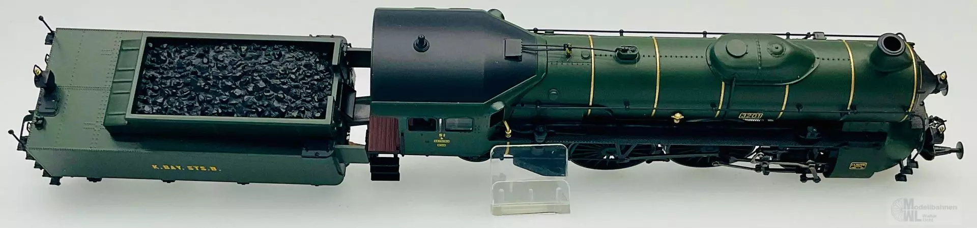 Modell: Mit Digital-Decoder mfx und umfangreichen Geräuschfunktionen. Geregelter Hochleistungsantrieb. 2 Achsen angetrieben. Haftreifen. Eingerichtet für Raucheinsatz 72270. Fahrtrichtungsabhängig wechselndes Zweilicht-Spitzensignal und nachrüstbarer Rauchsatz konventionell in Betrieb, digital schaltbar. Zugbegegnungslicht und Führerstandsbeleuchtung zusätzlich digital schaltbar. Beleuchtung mit wartungsfreien warmweißen Leuchtdioden (LED). Detailliertes Fahrwerk mit durchbrochenem Barrenrahmen. Windschnittige Verkleidung von Rauchkammer, Kamin, Dom und Zylindergruppe sowie windschnittig gestaltetes Führerhaus. Kurzkupplung zwischen Lok und Tender. Am Tender kinematikgeführte Kurzkupplung mit NEM-Schacht. Befahrbarer Mindestradius 360 mm. Kolbenstangenschutzrohre liegen separat bei.