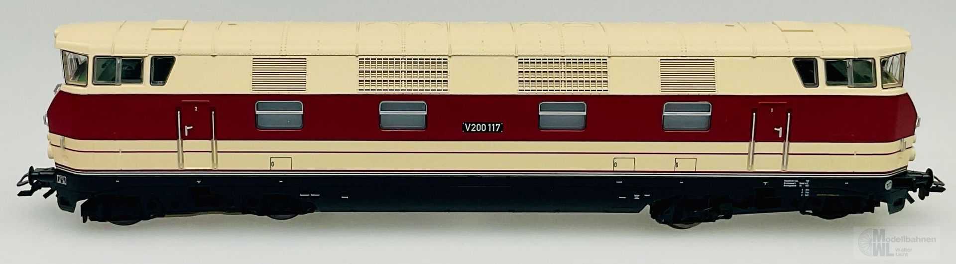 Das in seinem Erscheinungsbild neu entwickelte Piko Modell der V 200 117 ist ein konsequent vorbildgetreues H0-Abbild des Messeexponats von 1966 und gibt das Vorbild mit seinen mehrfach geteilten Front- bzw. Seitenfenstern exakt wieder.