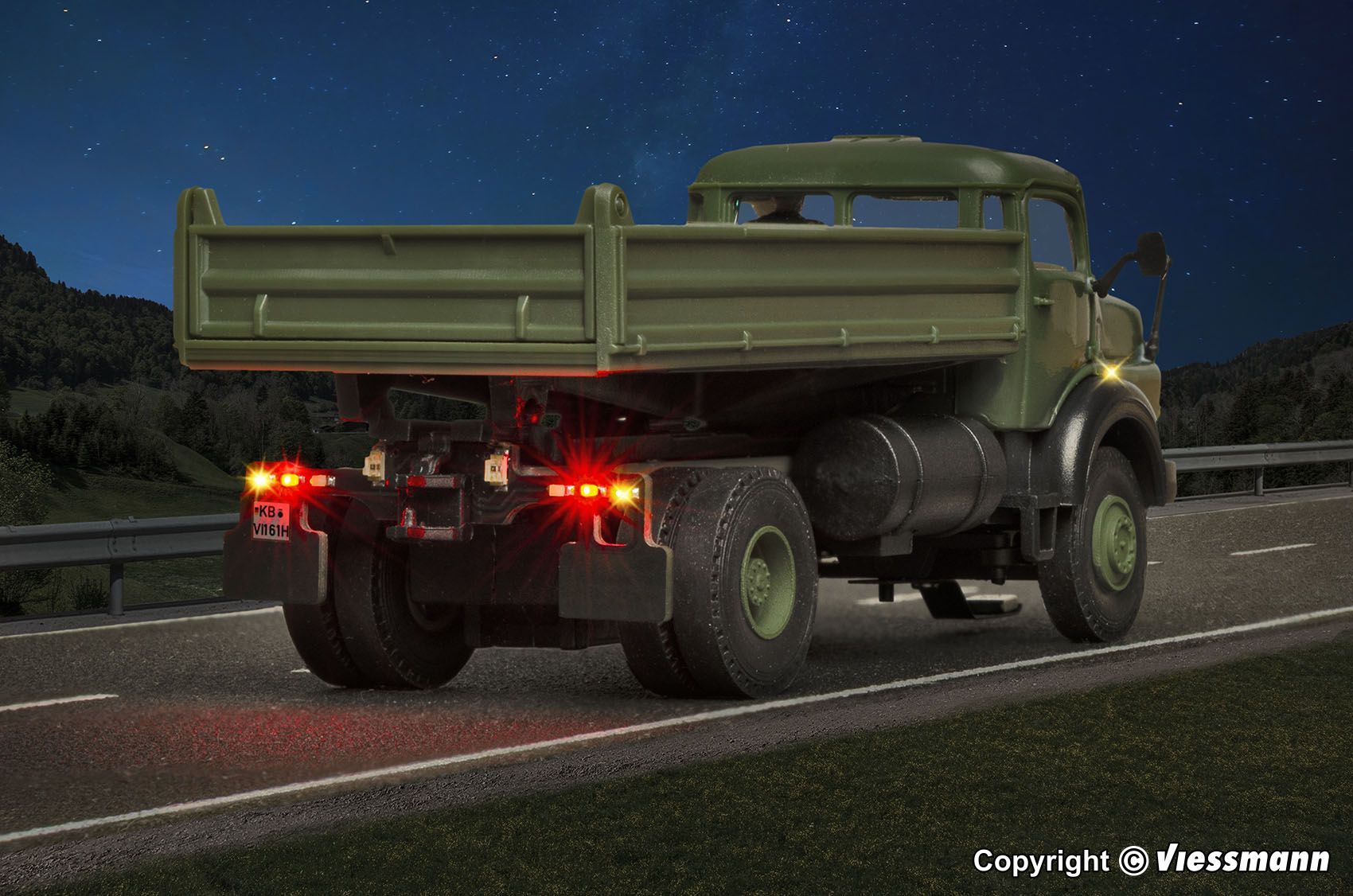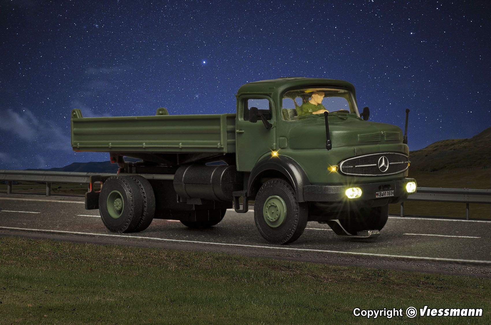 Produktinformationen "Viessmann 8161 - CarMotion Mercedes-Benz Rundhauber 2-achs mit Kipp-Pritsche Militär H0 1:87"
