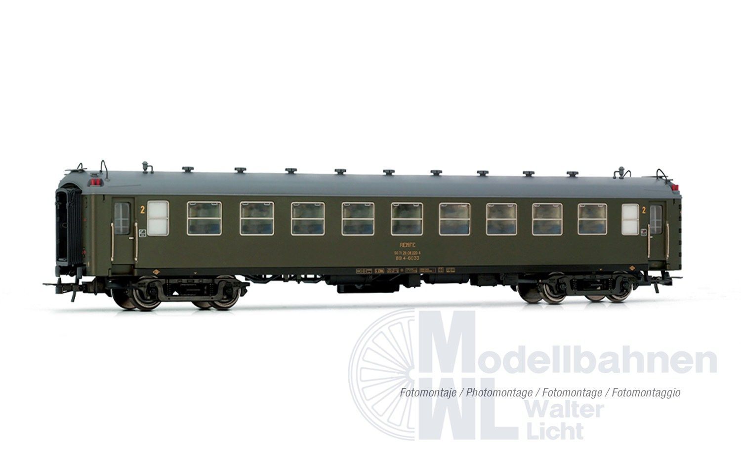 RENFE, 2-tlg. Set Reisezugwagen 5000 der Gattung BB4 2. Klasse, mit Faltenbälgen, olivgrüne Farbgebung