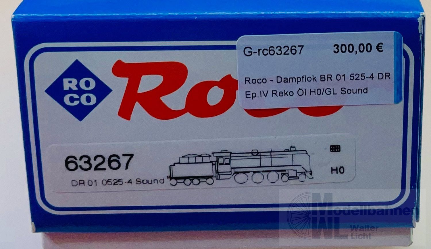 Produktinformationen "Roco 63267 - Roco - Dampflok BR 01 525-4 DR Ep.IV Reko Öl H0/GL Sound"