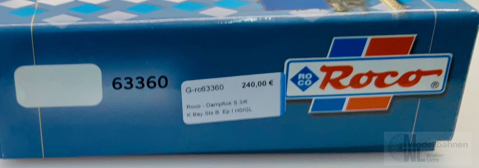 Produktinformationen "Roco 63360 - Roco - Dampflok S 3/6 K.Bay.Sts.B. Ep.I H0/GL"