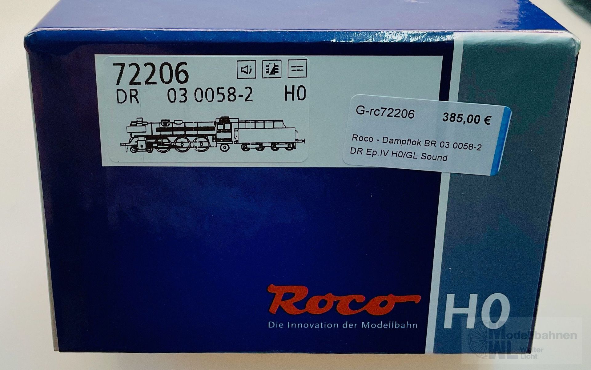 Produktinformationen "Roco 72206 - Roco - Dampflok BR 03 0058-2 DR Ep.IV H0/GL Sound"