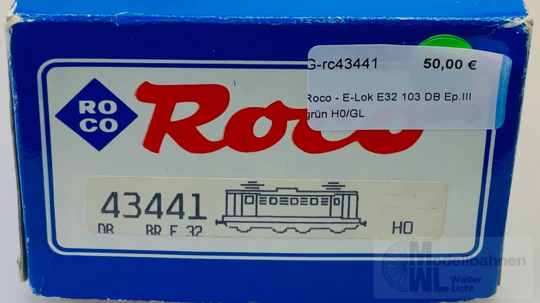 Produktinformationen "Roco 43441 - Roco - E-Lok E32 103 DB Ep.III grün H0/GL"
