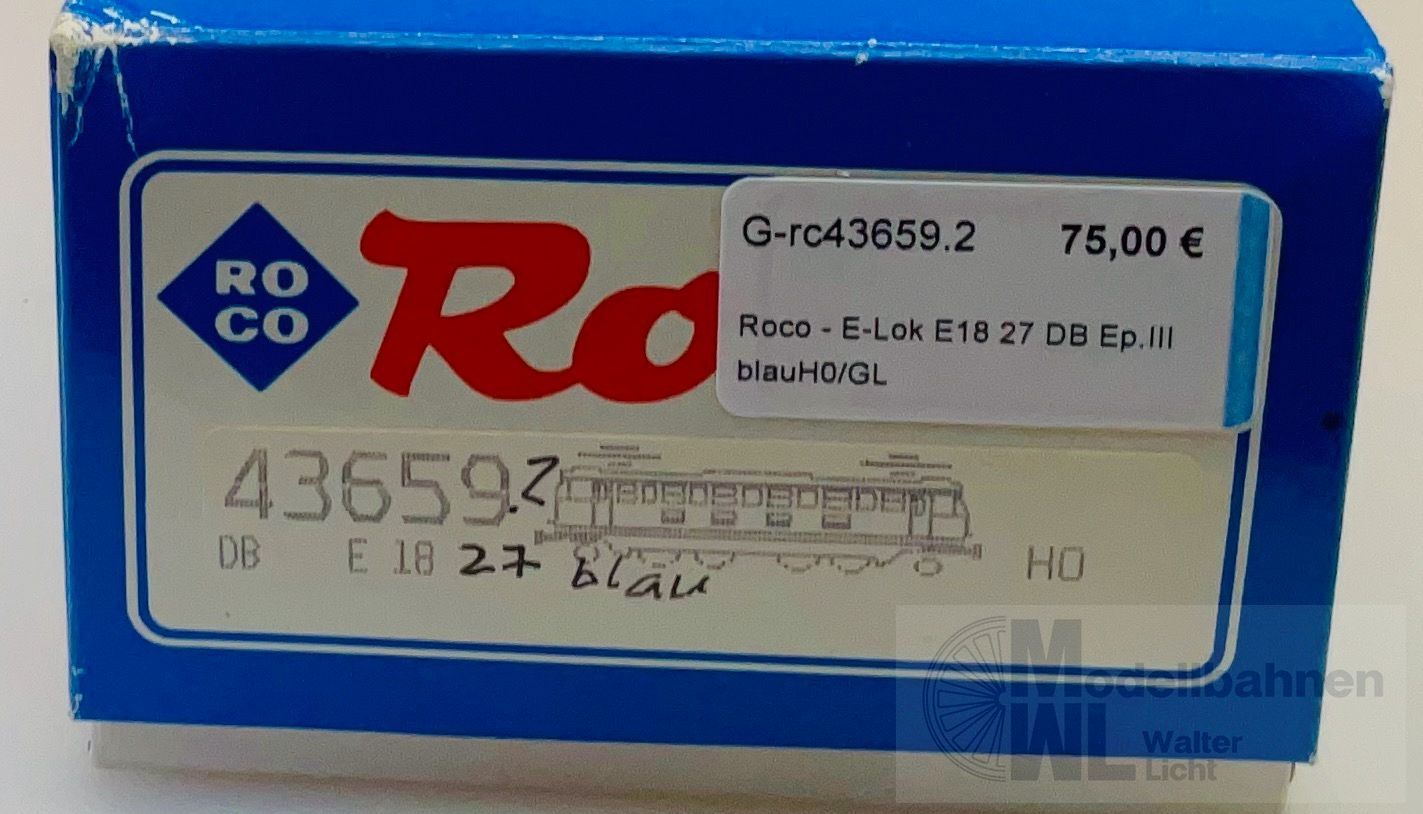 Produktinformationen "Roco 43659 - Roco - E-Lok E18 27 DB Ep.III blauH0/GL"