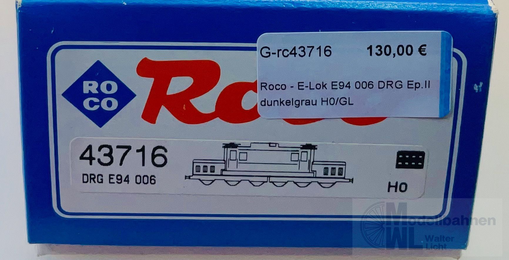Produktinformationen "Roco 43716 - Roco - E-Lok E94 006 DRG Ep.II dunkelgrau H0/GL"