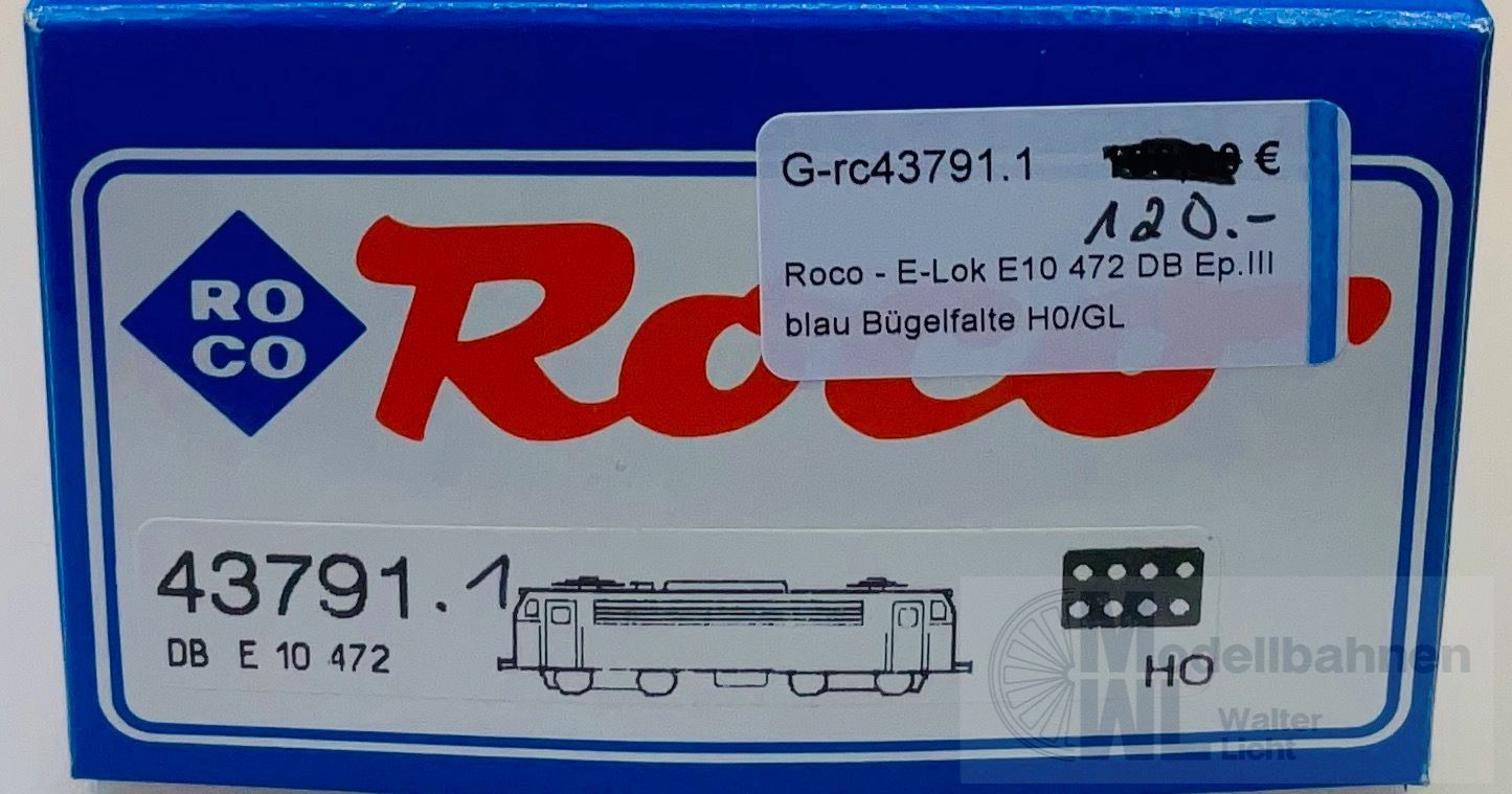 Produktinformationen "Roco 43791 - Roco - E-Lok E10 472 DB Ep.III blau Bügelfalte H0/GL"