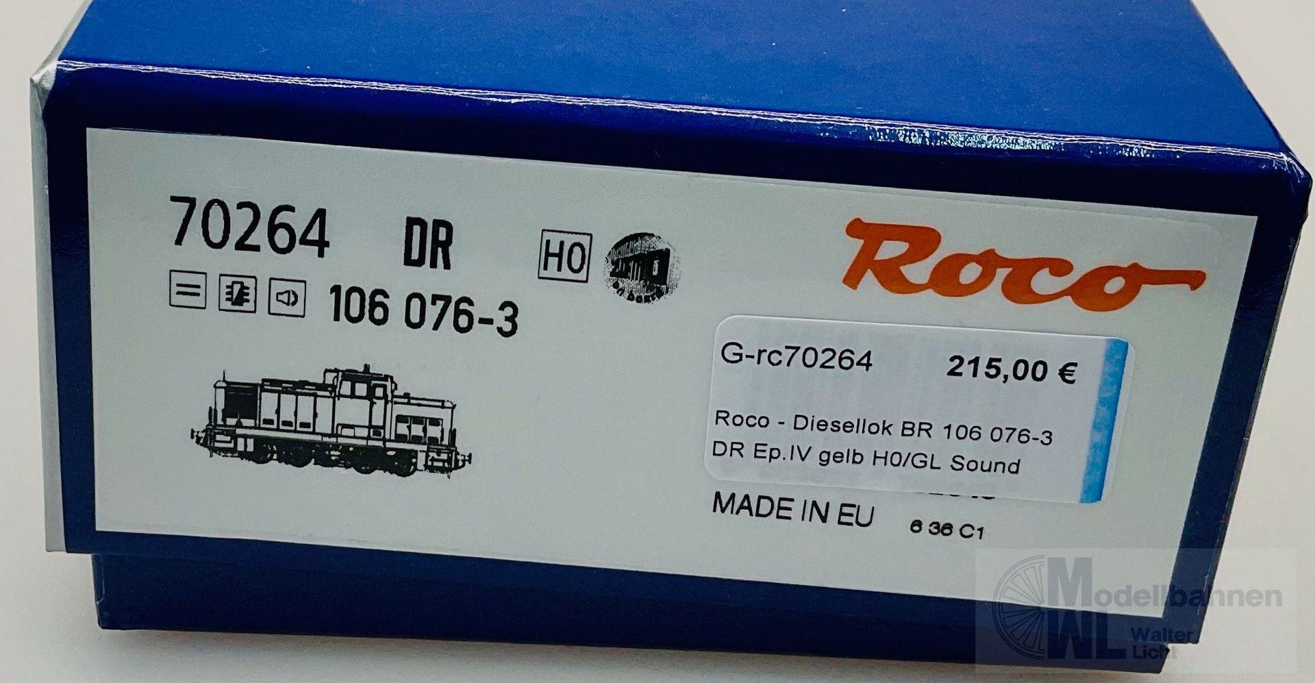 Produktinformationen "Roco 70264 - Roco - Diesellok BR 106 076-3 DR Ep.IV orange H0/GL Sound"