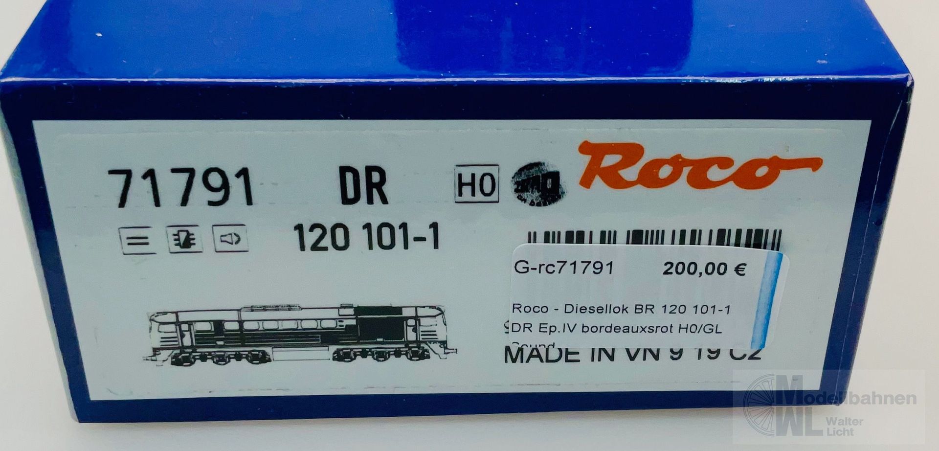 Produktinformationen "Roco 71791 - Roco - Diesellok BR 120 101-1 DR Ep.IV bordeauxsrot H0/GL Sound"