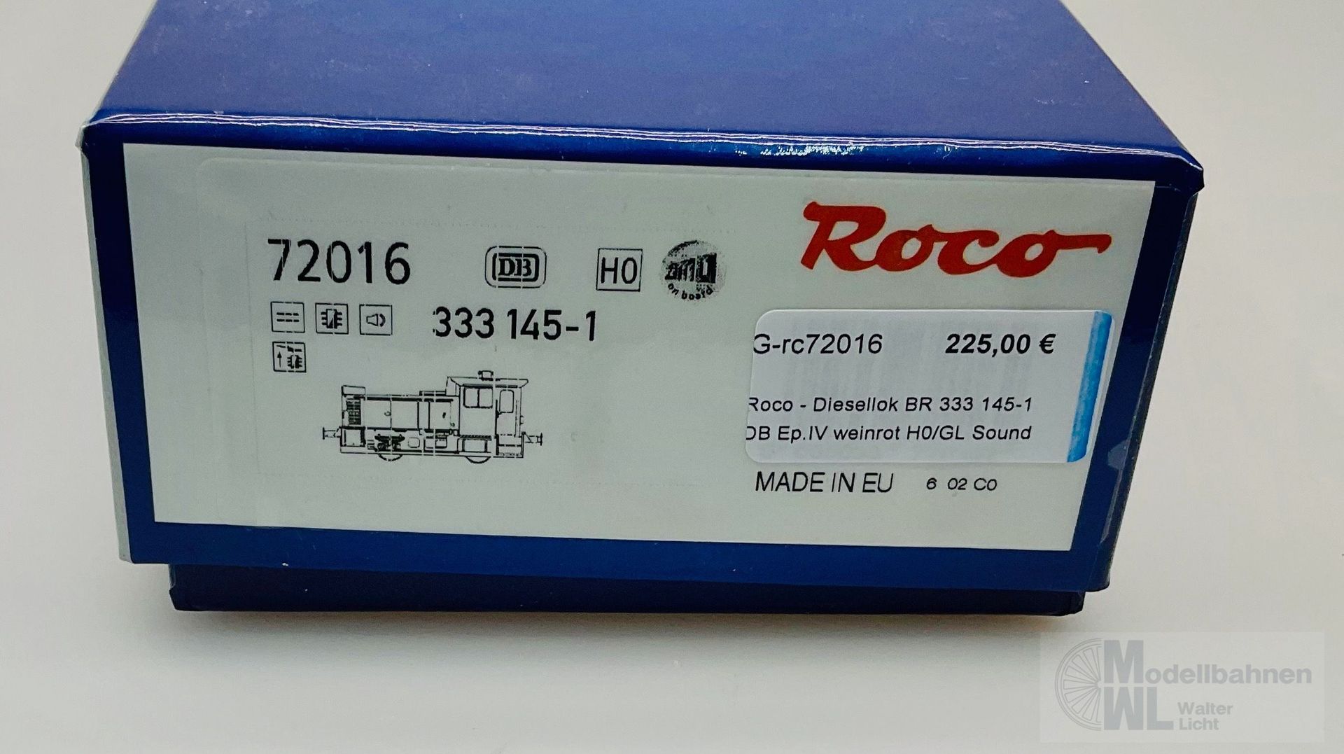 Produktinformationen "Roco 72016 - Roco - Diesellok BR 333 145-1 DB Ep.IV weinrot H0/GL Sound Kupplung"