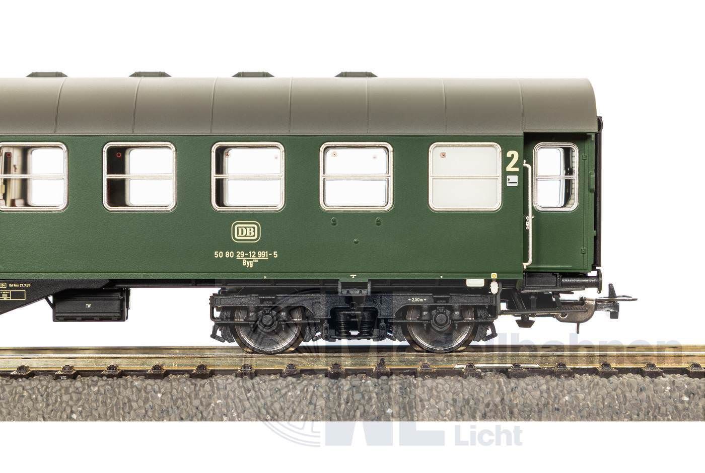 Neuheit 2026: Mitte der 1950er Jahre stand die Deutsche Bundesbahn vor einer großen Herausforderung: Der wachsende Personenverkehr verlangte nach modernen Reisezugwagen – doch der vorhandene Bestand war überaltert. Die Lösung brachte das Umbauwagen-Programm, bei dembewährte Untergestelle und Drehgestelle älterer Wagen wiederverwendet und mit neuen, stabilen Stahlaufbauten versehen wurden. Die daraus entstandenen vierachsigen Umbauwagen (B4yg) erhielten vollständig geschweißte Untergestelle, Mitteleinstiege mit Doppeltüren ohne Mittelsäule und erstmals sichere Türdichtungen. Dank der robusten Bauweise erreichtensie eine Höchstgeschwindigkeit von 120 km/h – ein deutlicher Fortschritt gegenüber den dreiachsigen Vorgängern. Zwischen 1958 und 1959 entstanden 666 Wagen der Bauart B4yg-58, ergänzt durch Varianten mit 1./2. Klasse und Gepäckabteil. Insgesamt standen so über 1.800 Wagen für den modernen Reiseverkehr bereit. Obwohl ihre Ausmusterung bereits für die 1980er Jahre geplant war, blieben viele Fahrzeuge bis 1990 im Einsatz. Umbauwagen 2. Klasse B4yg DB Ep. IV, mit Minden-Deutz Drehgestellen | Innenbeleuchtung und Schlusslicht nachrüstbar | Kurzkupplungskinematik | Feine Griffe und Trittstufen | Angesetzte Bremszylinder, Batteriekästen und Toilettenrohre | Bremsschläuche und Kuppelhaken beiliegend