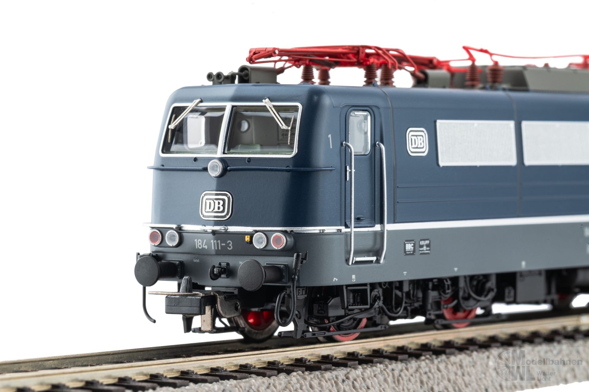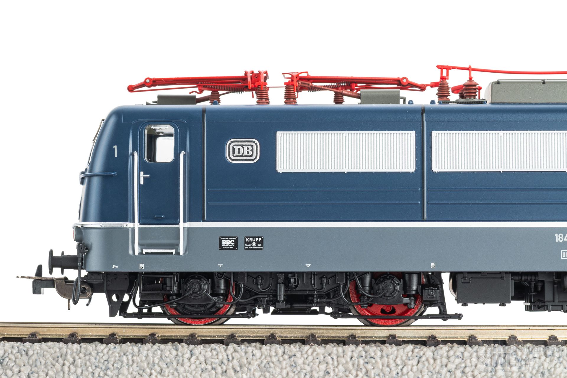 Mit der BR 184.1 der DB in der Epoche IV bringt PIKO die als Europa-Lok bekannt gewordenen Maschinen auf die H0 Gleise. Ausgestattet für verschiedene Stromsysteme in Deutschland, Frankreich, Belgien und Luxemburg erleichterten die Maschinen den grenzüberschreitenden Verkehr merklich. Die PIKO Konstruktion setzt der Lokomotive ein würdiges Denkmal. Beim Blick auf den detaillierten Dachgarten fallen direkt die feingliedrigen Stromabnehmer aus Metall ins Auge, welche ohne sichtbare Verschraubungen auf dem Lokdach montiert wurden. Die Seitenflächen werden durch feine Gitter und Gravuren geprägt. Durch die Tür im Führerstand fällt der Blick in den detailliert nachgebildeten Maschinenraum, welcher durch eine stimmige Beleuchtung ideal in Szene gesetzt wird. Auch die Führerstandbeleuchtung ist digital schaltbar. Beim Blick unter den Lokkasten präsentieren sich die Drehgestelle mit zahlreichen, separat angesetzten Bauteilen. Abgerundet wird der Gesamteindruck durch die saubere Lackierung und die konturenscharfe Bedruckung.Das PIKO Expert-Modell ist werkseitig mit einem PIKO PSD XP Sound-Decoder ausgestattet und verfügt über zahlreiche, fahrzeugtypische Sounds.