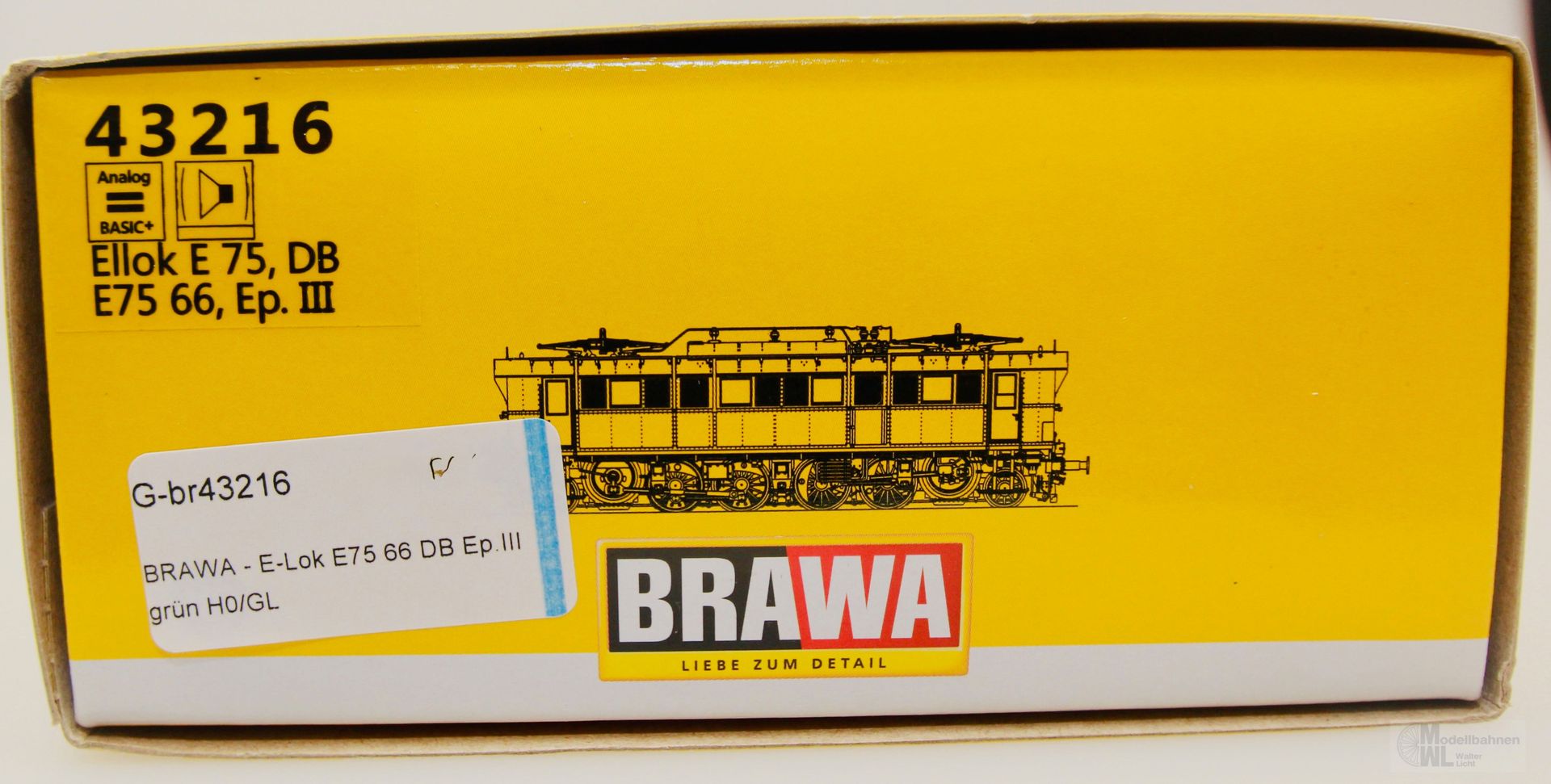 Produktinformationen "Brawa 43216 - BRAWA - E-Lok E75 66 DB Ep.III grün H0/GL"