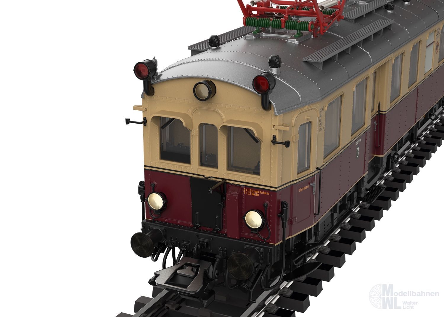 Modell: Triebwagen elT als angetriebene Einheit mit Digital-Decoder mfx+ und umfangreichen Geräuschfunktionen. Geregelter Hochleistungsantrieb. Vier Achsen angetrieben. Haftreifen. Zweilicht-Spitzensignal und zwei rote Schlusslichter über beide Einheiten an den äußeren Stirnseiten mit der Fahrtrichtung wechselnd, digital schaltbar. Zusätzlich 3. Spitzenlicht oben als Zugbegegnungslicht jeweils in Fahrtrichtung vorne separat digital schaltbar. Beide Einheiten sind über eine mehrpolige Kupplung fest miteinander Gekuppelt. Innenbeleuchtungen im Triebwagen elT und Steuerwagen elS konventionell in Betrieb, digital schaltbar. Beleuchtung mit wartungsfreien warmweißen Leuchtdioden (LED). Spitzensignal an Triebwagenseite 1 und Steuerwagenseite 2 jeweils separat digital abschaltbar. Führerstandbeleuchtung an den äußeren Führerständen separat digital schaltbar.Mit Pufferspeicher. Sehr detaillierte Ausführung von Fahrwerk und Aufbau. Wagenkasten und Wagenboden aus Metall. Mehrteilige und mehrfarbige Inneneinrichtung. Nachgebildete Glocke, Bremsleitungen und zwei Kurzkupplungsköpfe liegen bei. Gesamtlänge über Puffer ca. 46,8 cm.