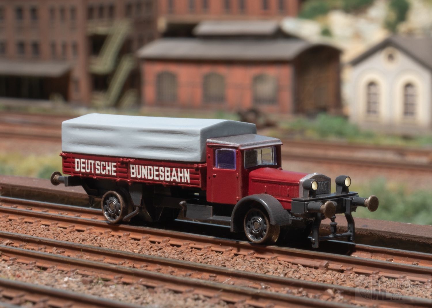 Vorbild: Schienen-LKW 5 to Vomag (Vogtländische Maschinenfabrik AG) der DB (Deutsche Bundesbahn) im Zustand der Epoche III.