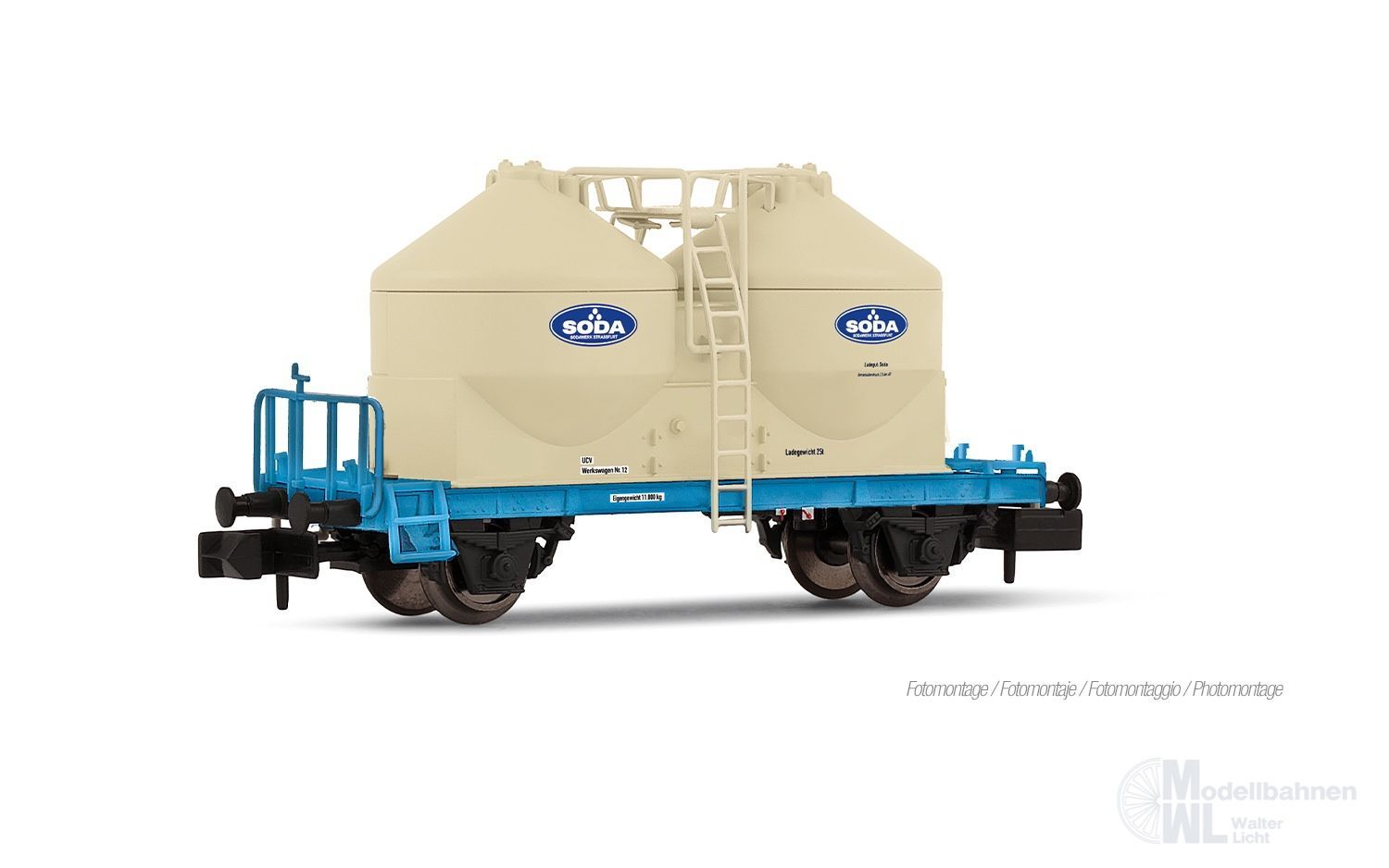 Sodawerk Stassfurt, ASF shunting device, set with 2 x Ucs silowagons, ep. V