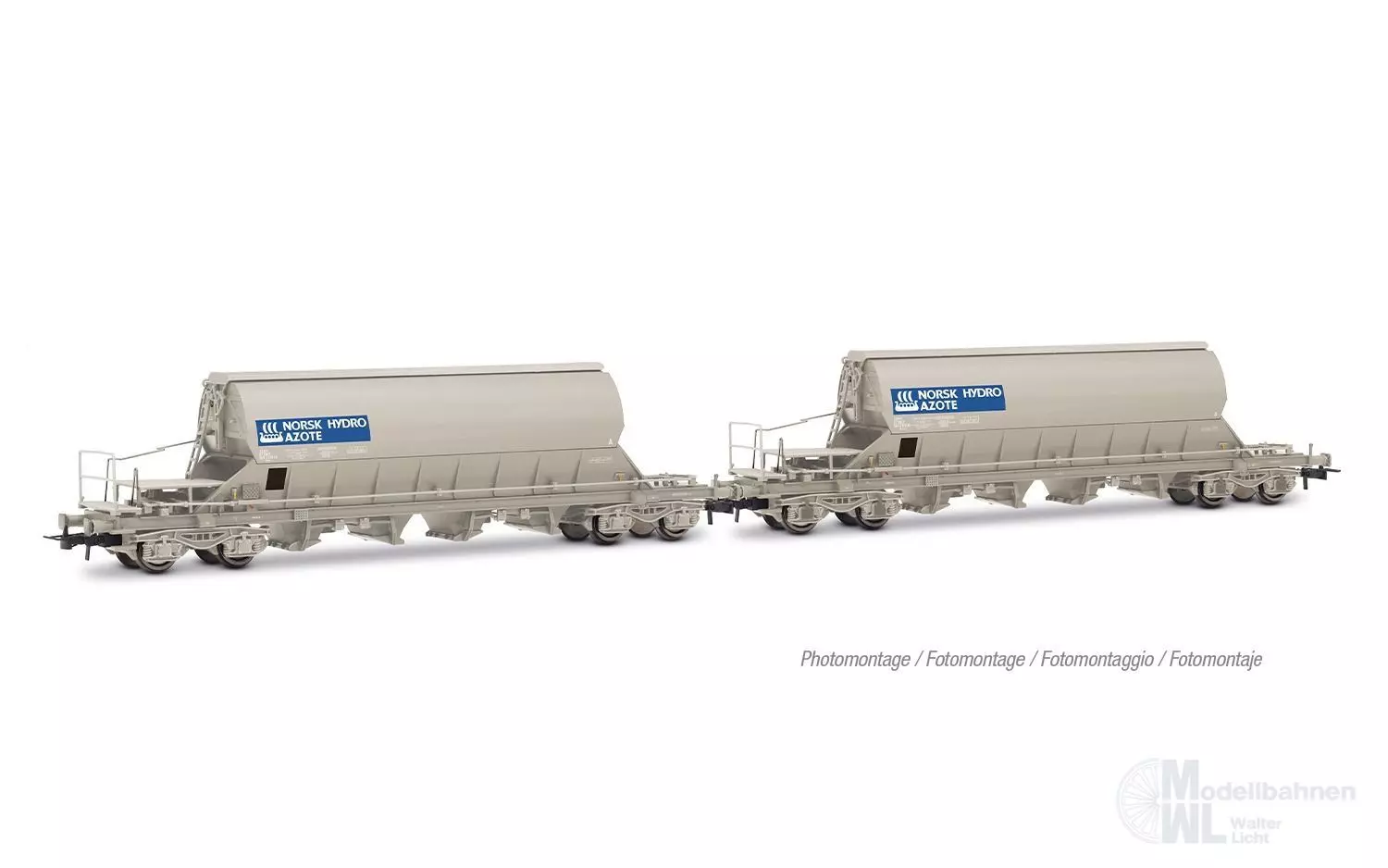SNCF, 2-unit pack Taoos hopper wagons, "NORSK HYDRO AZOTE", long chassis, grey livery, ep. IV