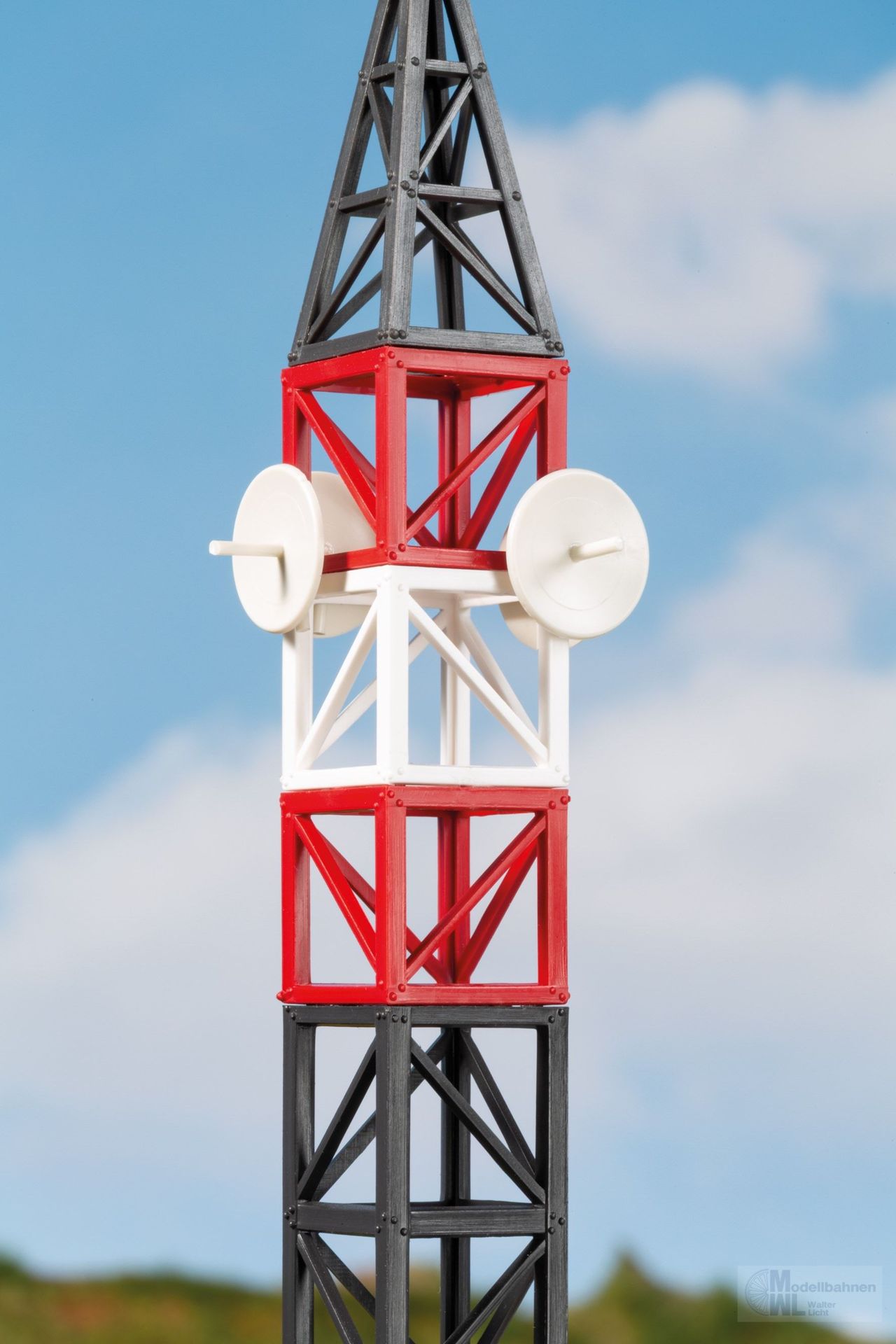 Eine Funkstation, die moderne Infrastruktur glaubwürdig auf die Anlage bringt. Zum Bausatz gehören Funkmast und Solaranlagen auf dem Dach, damit das Modell auch aus der Nähe wirkt.