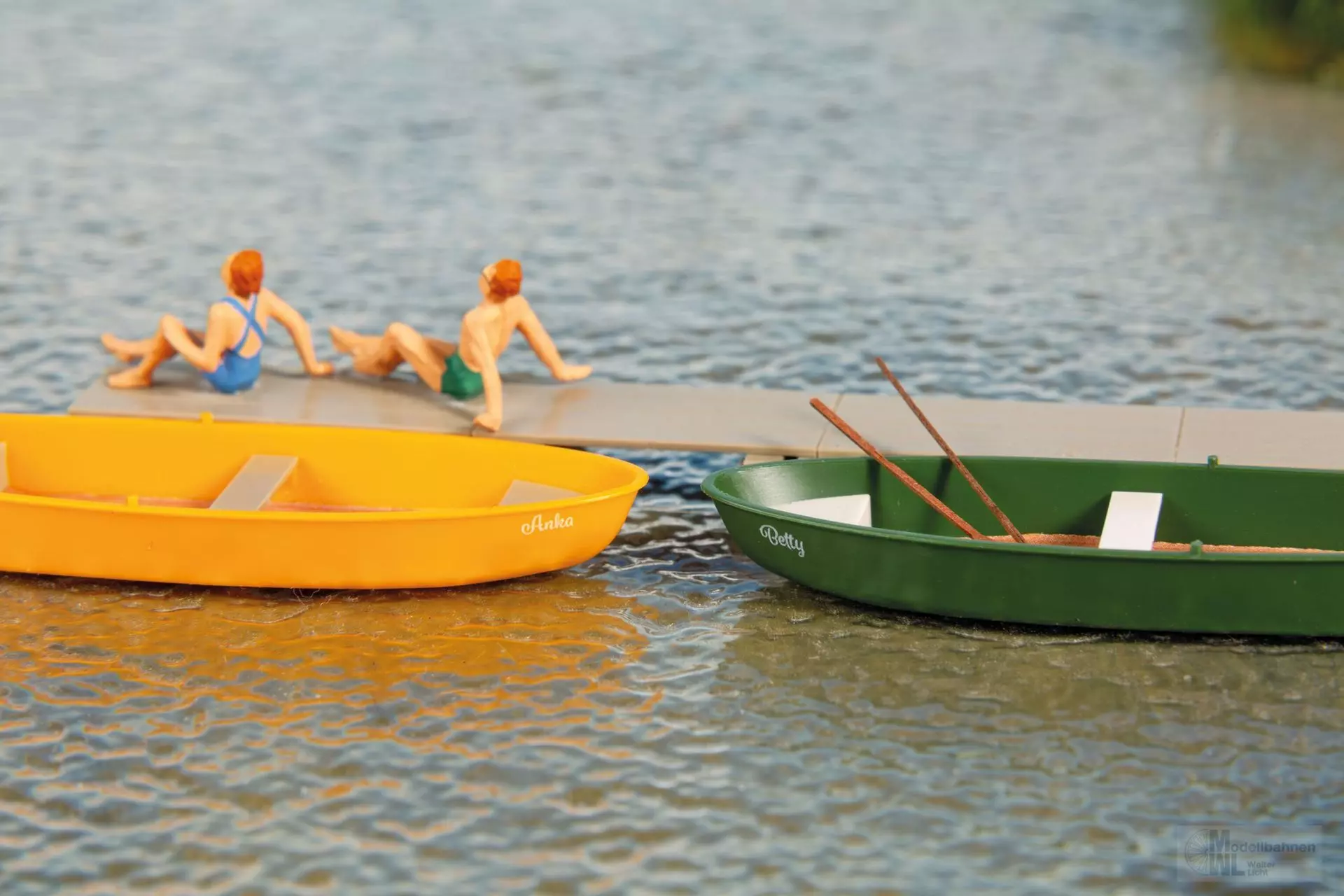 Kleiner Bausatz für Szenen am Wasser, der sofort Atmosphäre schafft. Vier Boote liegen bei, zwei davon sind bereits bedruckt. Ideal für Uferbereiche, kleine Häfen oder Badestellen.