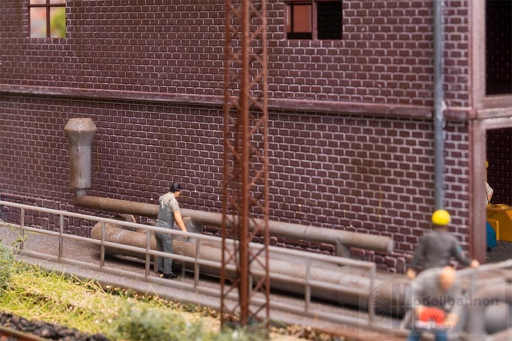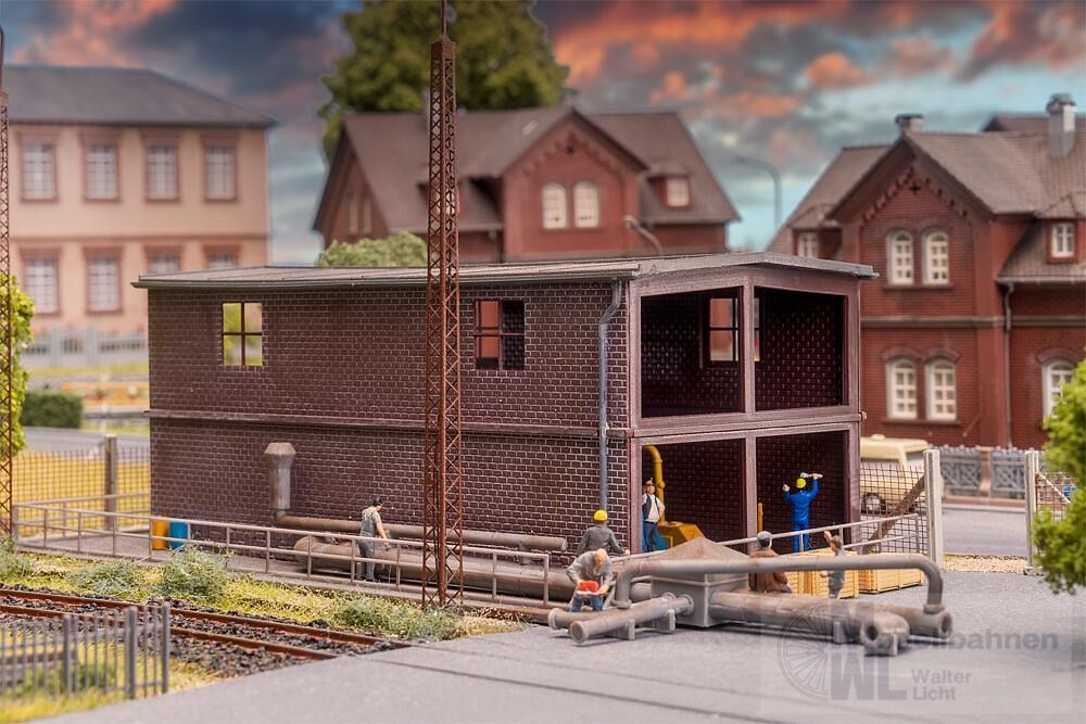 Wasseraufbereitung im Industriestil! Ideal für jede realistisch gestaltete Industrieanlage. Die Anlage zur Wasseraufbereitung ergänzt Hochofen und andere Industriegebäude auf stimmige Weise. Mit dem Rohrleitungs-Set (Art. 180331) flexibel erweiterbar – für noch mehr Authentizität im Miniaturmaßstab.