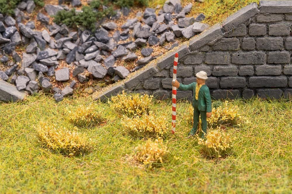 Kleine, unregelmäßige Blütenbüschel in Gelb zum Aufkleben – perfekt, um Wege, Gärten, Parks oder Wiesen zu beleben und der Modelllandschaft eine natürliche, detailreiche Note zu verleihen.