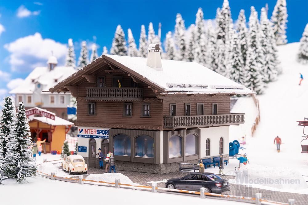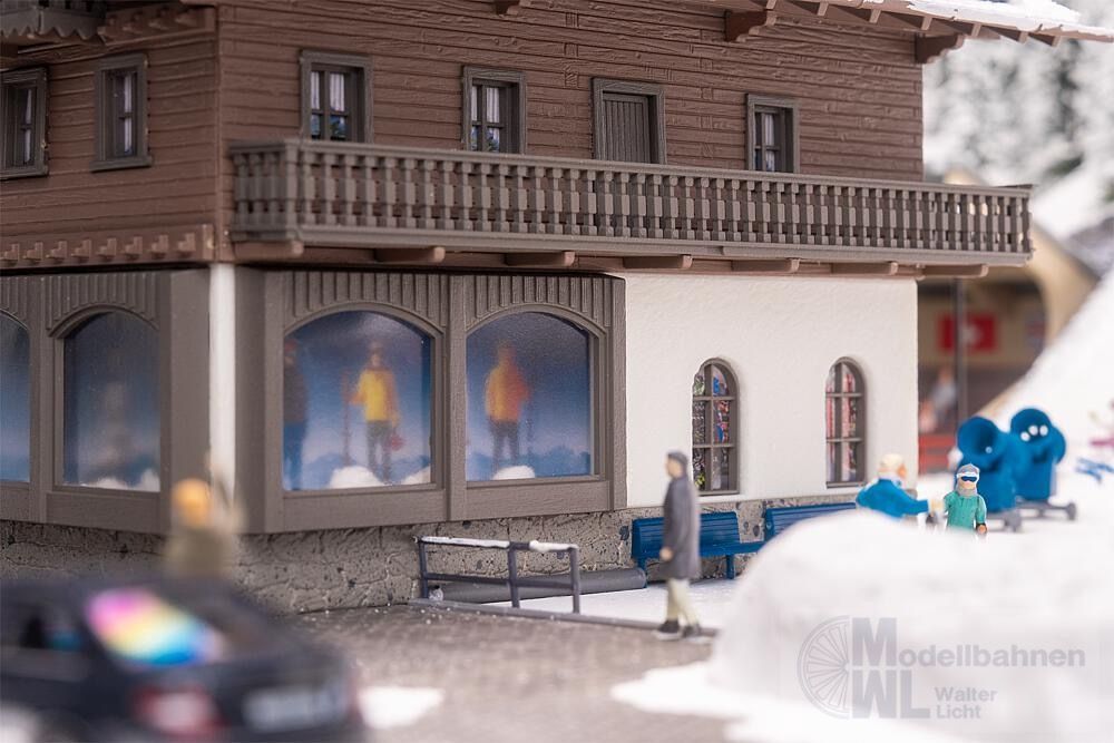 Ob Skier, Snowboards oder Zubehör – dieses Modell vermittelt die Atmosphäre eines lebendigen Touristenortes und ergänzt hervorragend Bergdörfer und Wintersportanlagen auf der Modellbahnanlage.