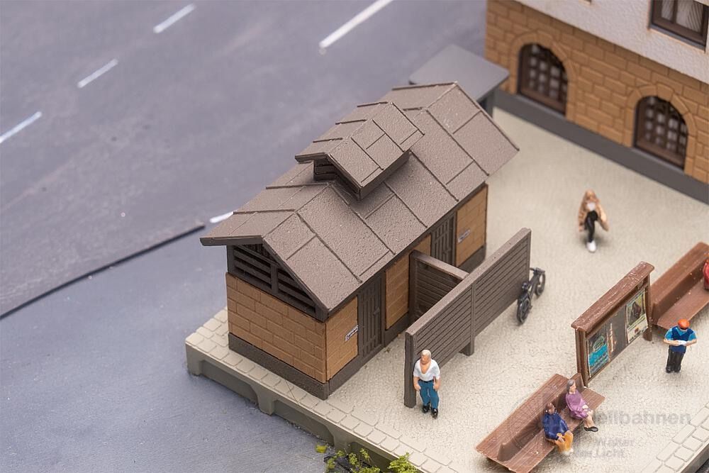 Kleiner charmanter Bahnhof mit Toilettenhäuschen und hölzernem Anbau. Hervorragend geeignet, um eine kleine Stadt mit einem Bahnhof auszustatten. Der Bausatz besteht aus einem Materialmix aus Kunststoff und Holz/Spezialkarton.