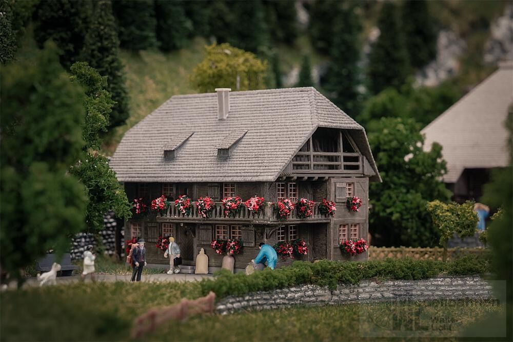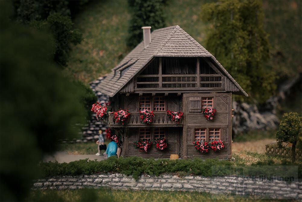 Ein charmantes, dunkles Schwarzwaldhaus, wie man es in den Höhenlagen des Schwarzwaldes findet. Dank seiner dezenten Größe fügt sich das Haus perfekt in Wiesen- und Waldlandschaften ein und eignet sich ideal für den Anlagenhintergrund. Inklusive Figur – ein kleines Stück Schwarzwälder Tradition für jede Modellwelt.