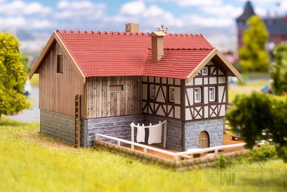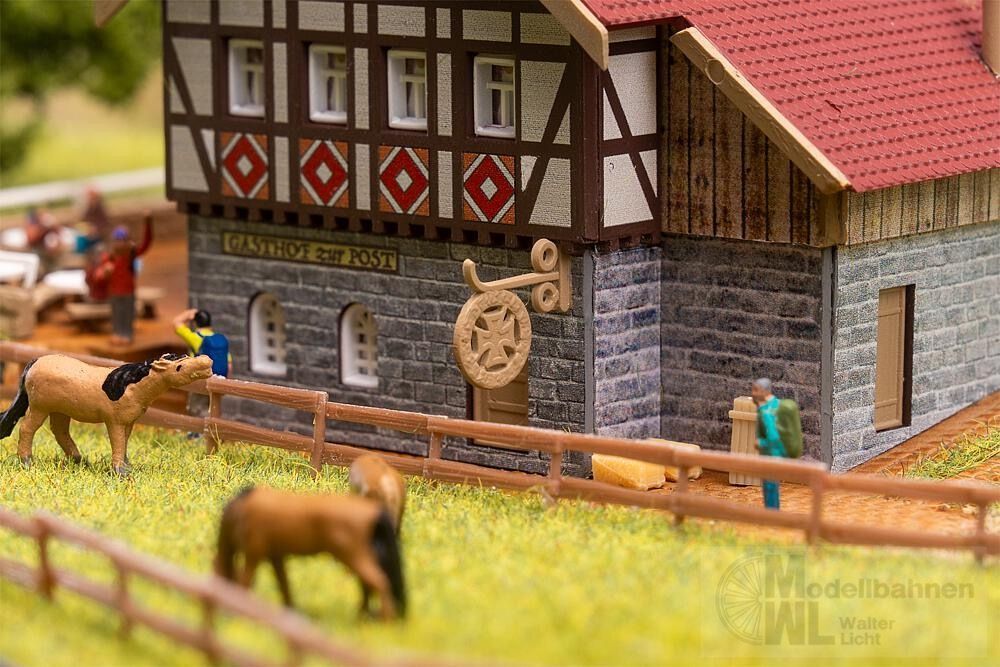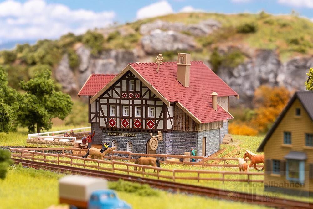Dieses charmante Gasthaus mit Steinfundament und Fachwerk lädt mit seinem großzügigen Außenbereich die Miniaturbesucher zum Verweilen ein. Es versprüht urigen, bäuerlichen Charme und bereichert jede Dorfanlage um ein liebevoll gestaltetes Detail.