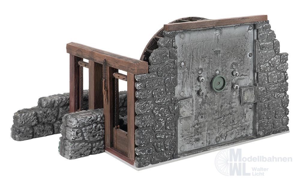 Das Wasserrad mit gemauertem Kanal zeigt traditionelle Mühlentechnik in detailreicher Ausführung. Die fein strukturierte Holzoptik und die naturgetreu gestalteten Steinmauern fügen sich perfekt in ländliche Umgebungen ein – ideal für Mühlen, Werkstätten oder historische Anlagen. Das Wasserrad kann mit dem Bastelmotor Art. 330090 (liegt nicht bei) angetrieben werden und wird so zum lebendigen Element Ihrer Modelllandschaft.