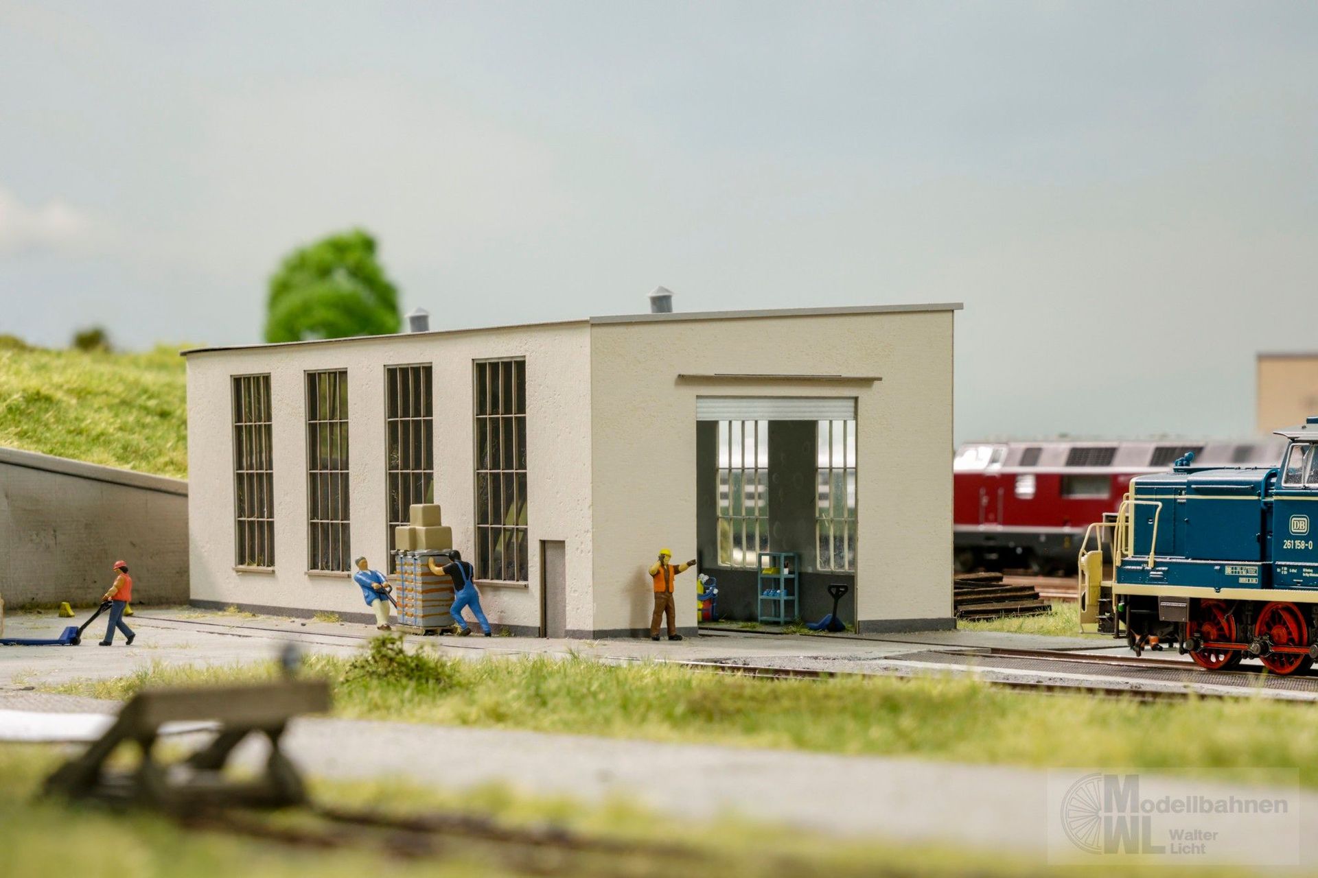 Der Lokschuppen „Herdorf“ von NOCH bringt authentische Eisenbahn?Atmosphäre direkt in Ihre Landschaft. Eindrucksvoll proportioniert und mit liebevoll gestalteten Details bildet dieser Schuppen das industrielle Herz zahlreicher Anlagen ab – vom lebendigen Güterbahnhof bis zur nostalgischen Dampflok?Ecke. Entwickelt und gestaltet in Deutschland, überzeugt der Lokschuppen durch seine sorgfältig bemalten Oberflächen und seine realitätsnahe Wirkung.