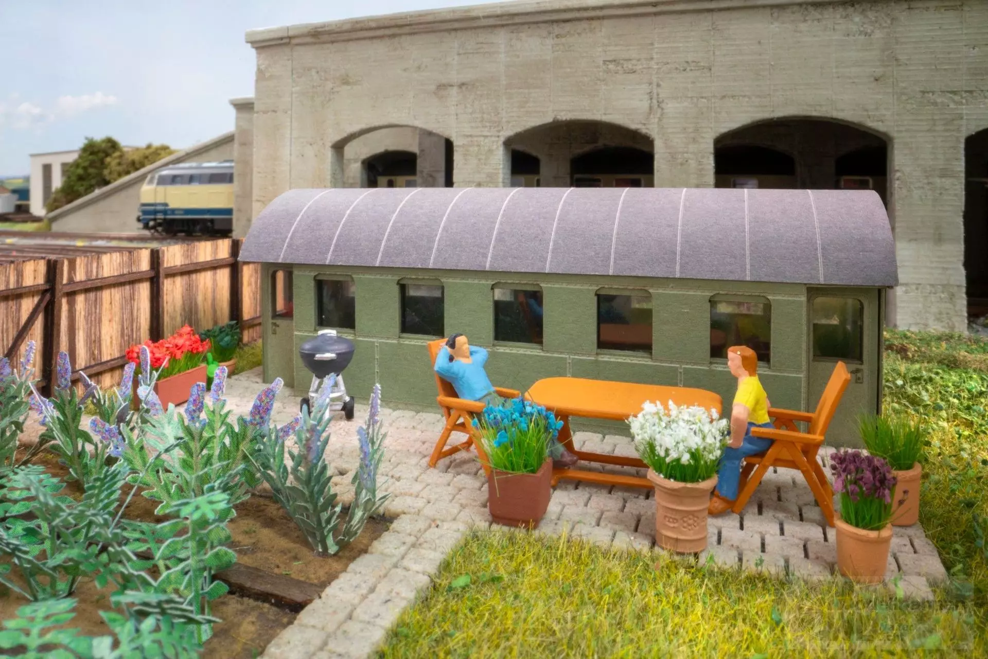 Das Gartenhaus „Bahnwaggon“ von NOCH bringt ein Stück gelebte Eisenbahngeschichte auf Ihre Modellanlage. Inspiriert von ausrangierten Waggons, die vielerorts als Gartenhäuschen, Werkstatt oder Rückzugsort weiterleben, entsteht hier ein charmantes Kleinod mit nostalgischem Flair.