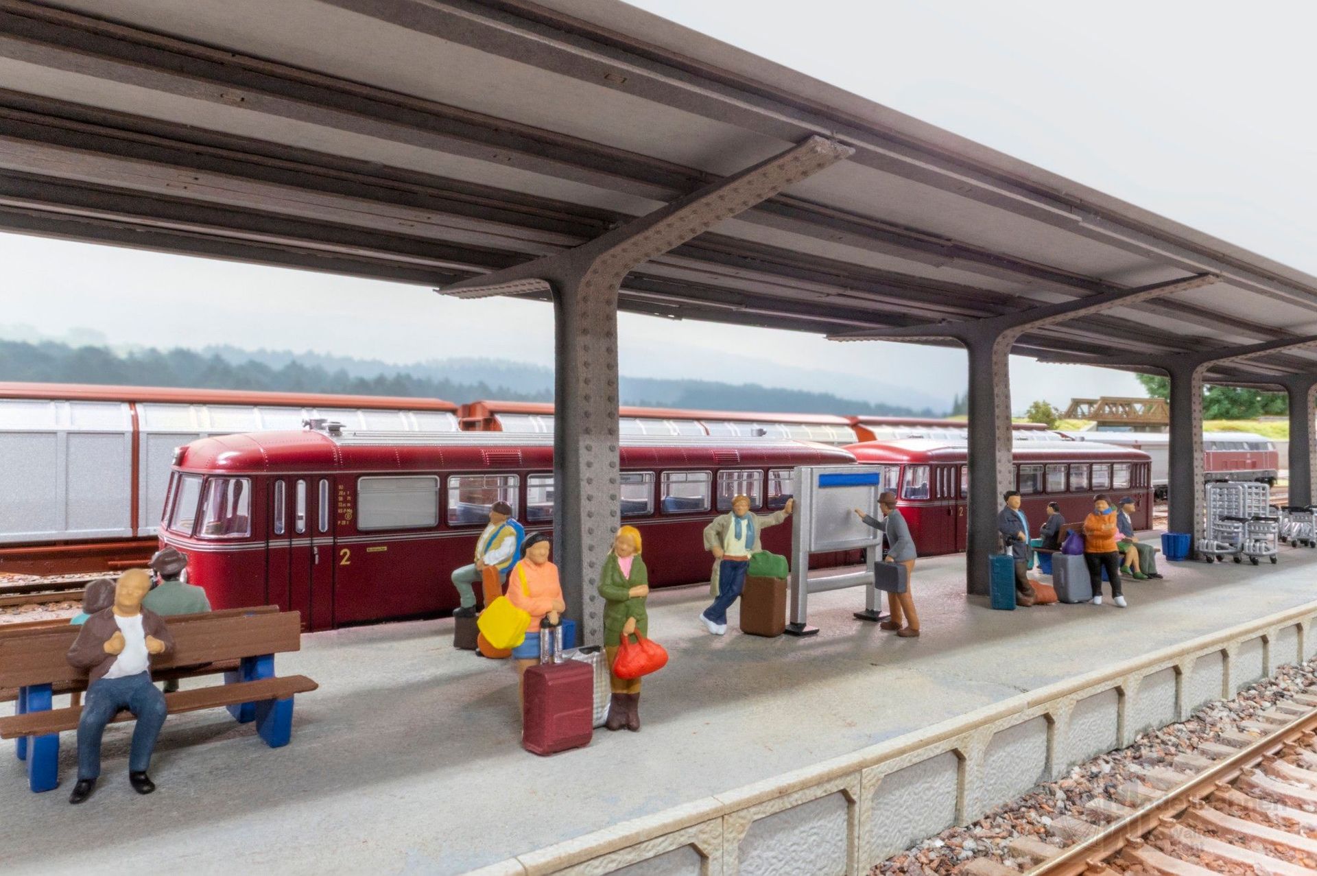 „Am Bahnsteig“ bedeutet: Menschen in Bewegung, kurze Begegnungen, Warten, Ankommen, Abschied: Szenen aus dem echten Leben, wie sie jeder kennt. NOCH bildet diese Realität authentisch ab und schenkt Ihrer Spur H0 Anlage genau die Details, die den Unterschied machen: glaubwürdige Figuren, stimmige Zubehörteile und ein Gesamtbild, das nicht gebaut wirkt, sondern erlebt.