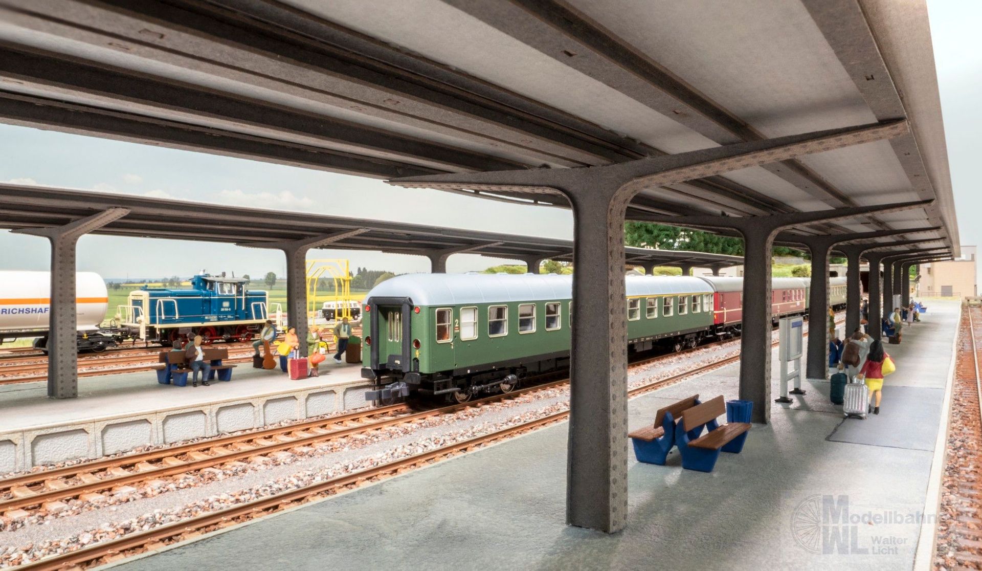 Ideal geeignet für kleine Haltepunkte ebenso wie für größere Bahnhöfe auf der Modelleisenbahn. Die Bahnsteigüberdachung lässt sich vielseitig einsetzen – im klassischen Modellbau, in Dioramen, als dekoratives Element oder für atmosphärische Makrofotografie. So entsteht eine Bahnhofsszene, die lebendig wirkt und Ihre Modellwelt sichtbar aufwertet.