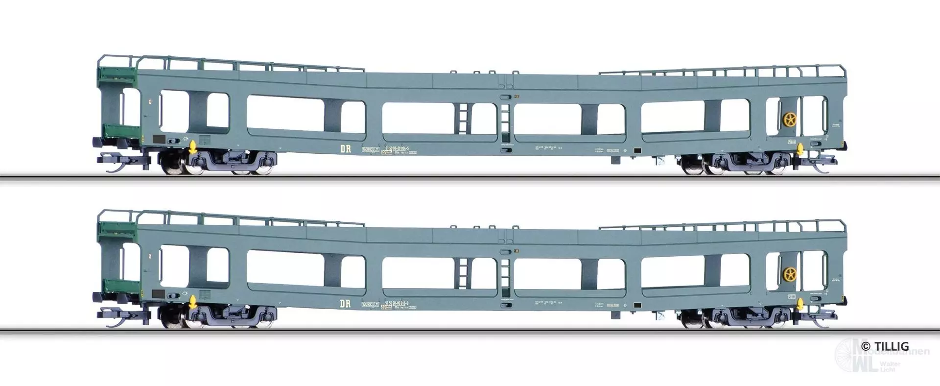 Eigenschaften "Tillig 01135 - Autotransportwagen Set DR Ep.IV DDm 2.tlg. TT 1:120"