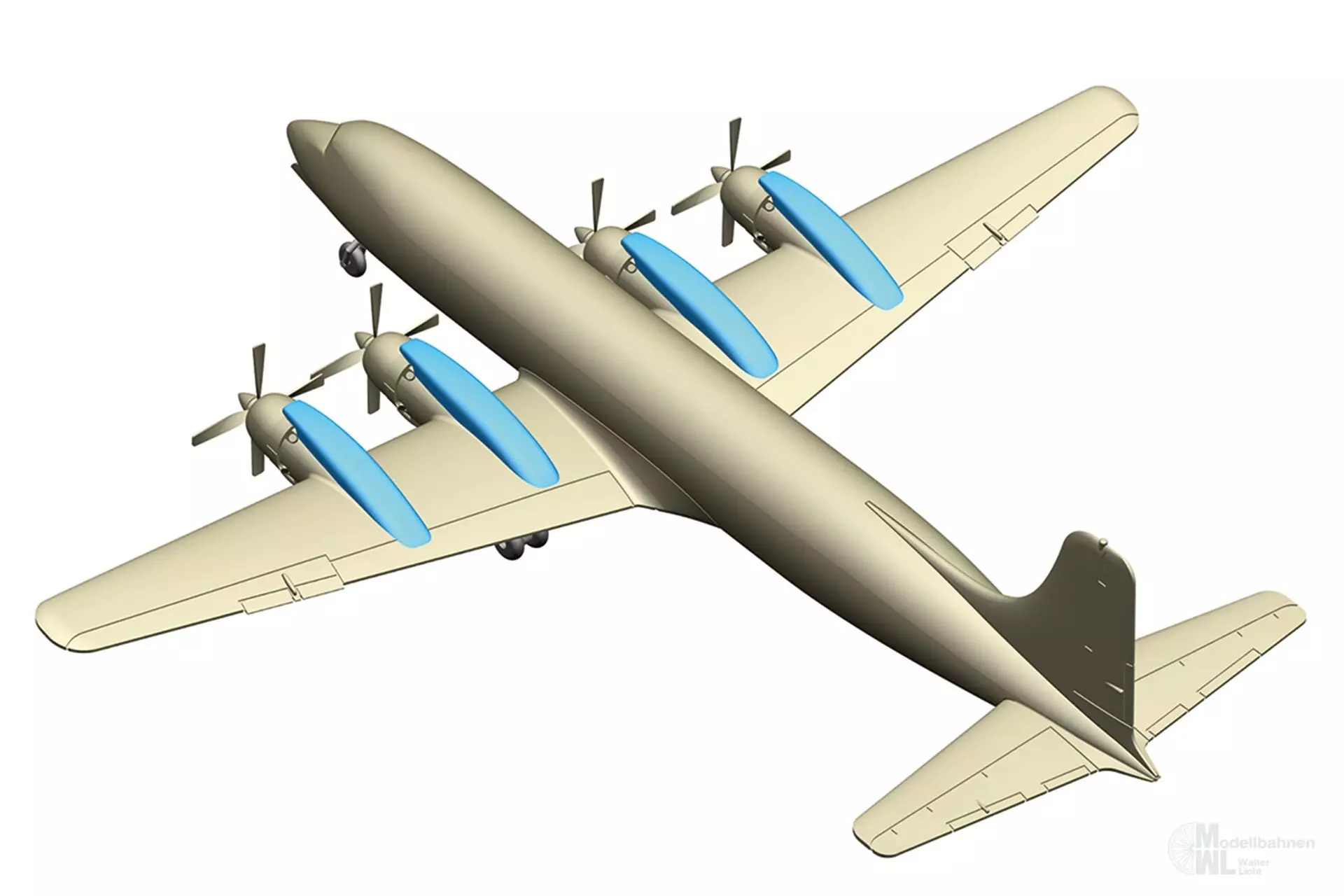 Im Jahr 1956, mit der Ankunft von ZS-DKD, war South African Airways die erste nicht-amerikanische Fluggesellschaft, die die Douglas DC-7 in Betrieb nahm und damit die Lockheed Constellation auf den Europa-Strecken ersetzte. Die DC-7B war das erste Flugzeug der SAA, das den Indischen Ozean überquerte und Perth anflog. Um die Entfernungen mit weniger Tankstopps zurücklegen zu können und die Zwischenlandungen letztlich auf nur zwei auf Mauritius und den Kokosinseln zu reduzieren, bestückte die Fluggesellschaft mit dem bekannten Springbock-Logo die vier Triebwerke mit zusätzlichen Satteltanks. Die zusätzlichen Tanks konnten jeweils bis zu 832 Liter Treibstoff aufnehmen und trugen dazu bei, die Reichweite einer Standard-DC-7 von 7.400 auf rund 9.000 Kilometer zu erhöhen. Ein Display-Stand liegt bei.