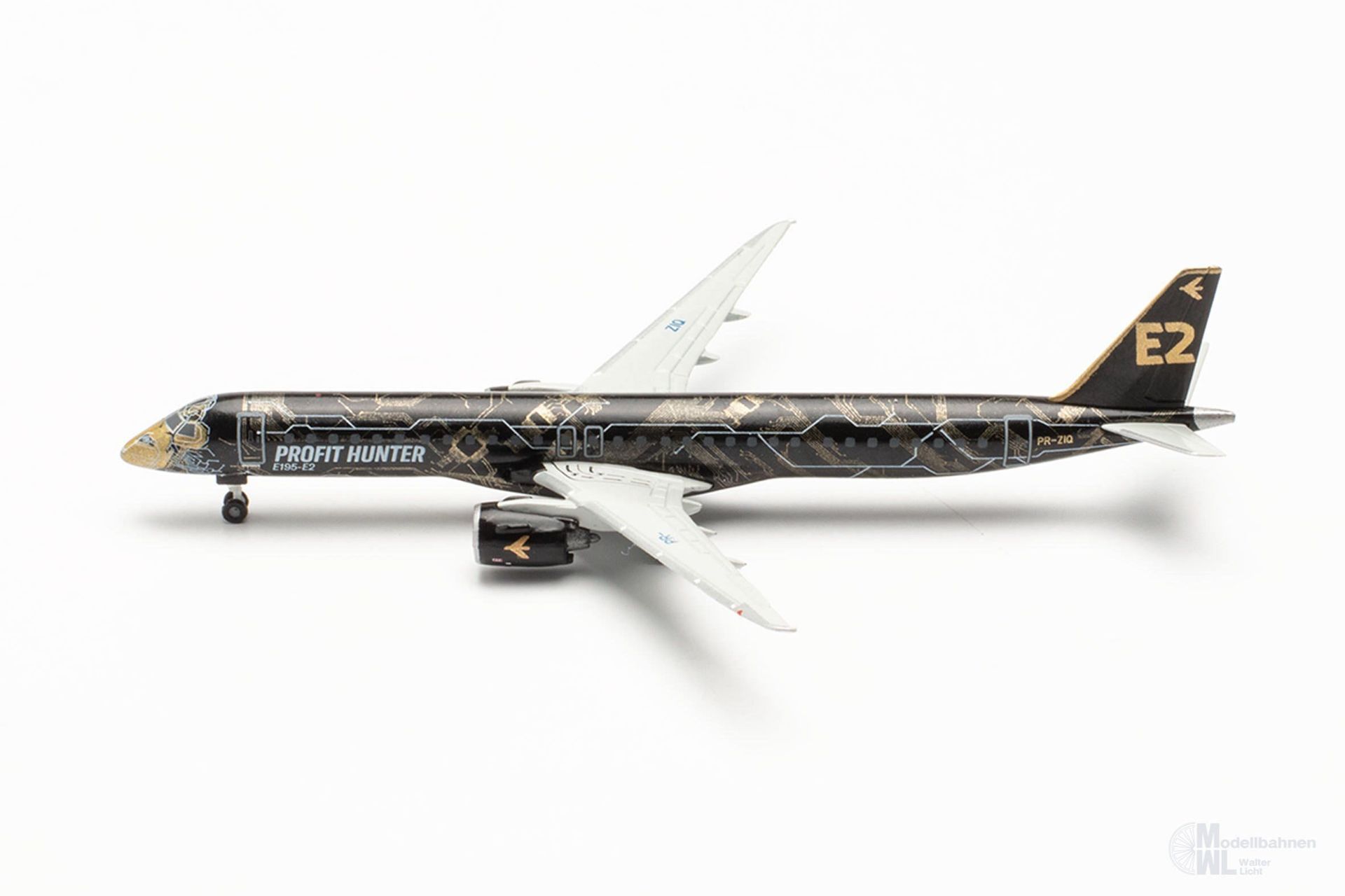 Spätestens mit der Entwicklung der zunächst ERJ, Embraer Regional Jet, genannten Serien 170 bis 195 gehört die brasilianische Embraer zu den Big Player im modernen Flugzeugbau und ist bei der Größenklasse bis zu 150 Sitzen seit Jahren marktführend. Mit zahlreichen Verbesserungen und neu entwickelten Komponenten, wie beispielsweise den Tragflächen und Triebwerken, erreichte Embraer eine deutliche Steigerung der Wirtschaftlichkeit und Reichweite bei der neuen Generation seiner E-Jets. Drei Varianten werden derzeit angeboten, die größte und derzeit am meisten nachgefragte Variante ist die E195-E2. Embraer hat die neue E2-Familie als Profit-Jäger (Profit Hunters) vermarktet und schickte die ersten Vorführflugzeuge rund um die Welt auf Werbetour. Bereits von Herpa in 1:200 erhältlich (Art.-Nr. 571852), folgt der spektakuläre TechLion nun auch als erstes Modell der neuen E2-Serie im Maßstab 1:500.