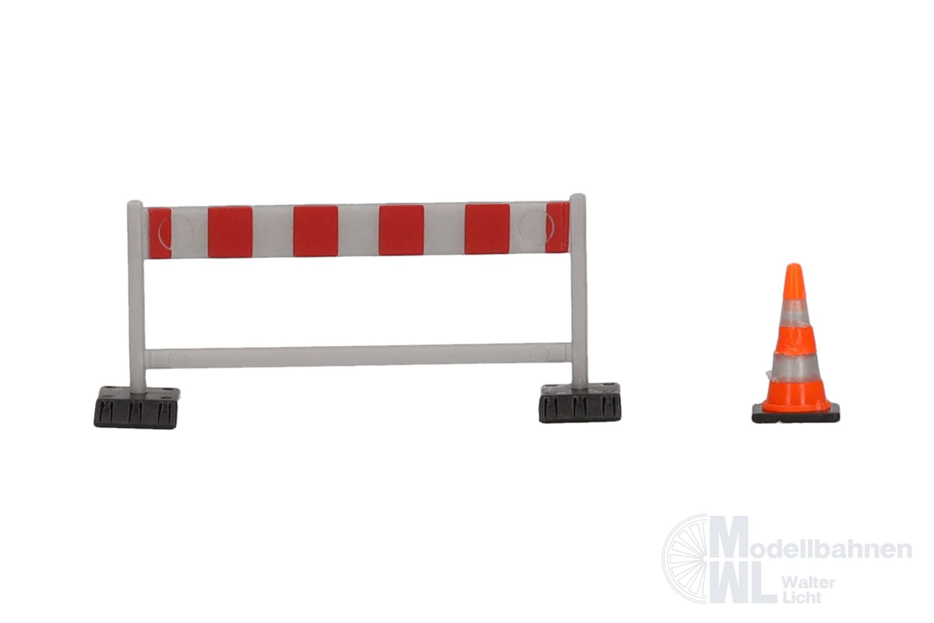 Baustelle? Klar braucht man dazu auch Absperrungen. Das Set enthält 20 Pylonen und 5 Absperrschranken in silber und leuchtrot, um die Alu-Ausführung zu simulieren.