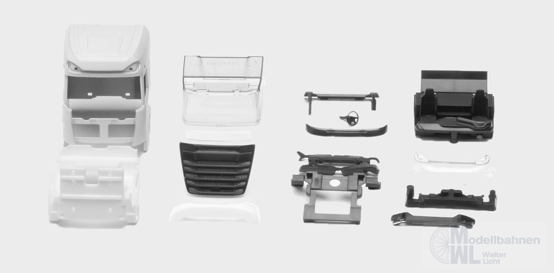 FORMNEUHEIT! Nur wenige Monate nach dem Erscheinen der neuen DAF XG/XG+ Zugmaschine im Herpa-Sortiment, sind vier Fahrerhausvarianten, hier erstmals ohne Windleitbleche und Sonnenblende, im Teileservice erhältlich, 085632, 085649, 085656 und 085663. Das passende Zugmaschinenfahrgestell wird unter 085670 angeboten und beinhaltet sowohl eine Chassisverkleidung alsauch eine weitere Auspuffblende und ein Fahrerhaus-Unterteil, welche für die Variante ohne Chassisverkleidung notwendig sind.