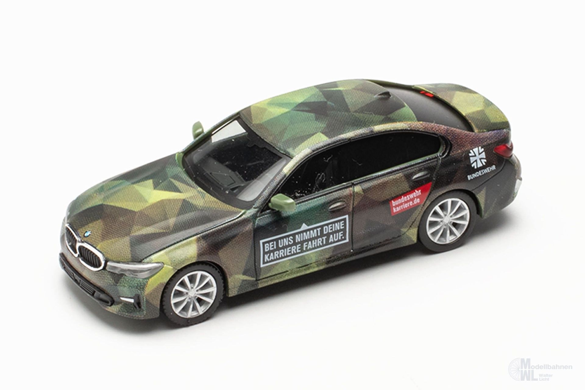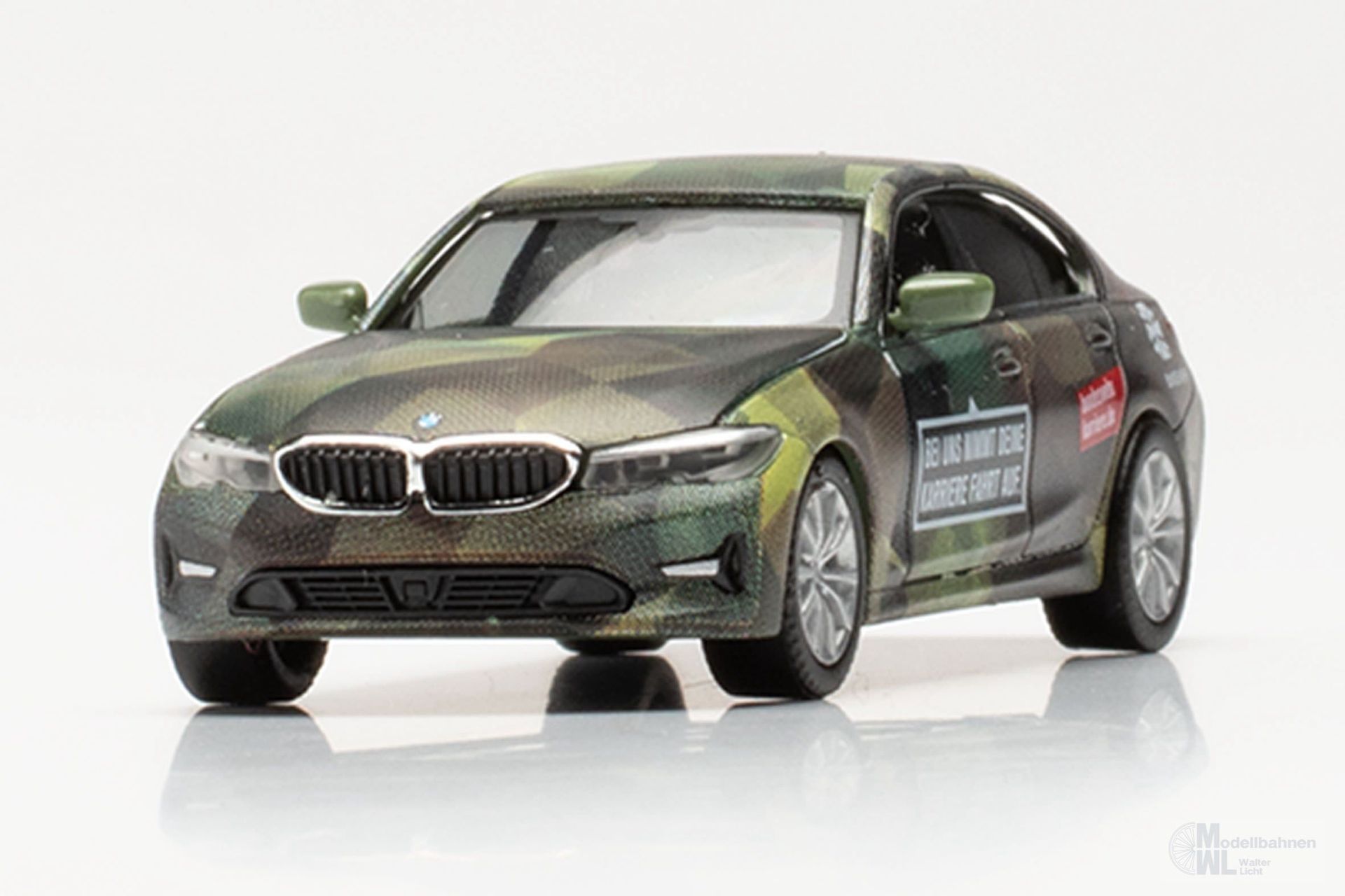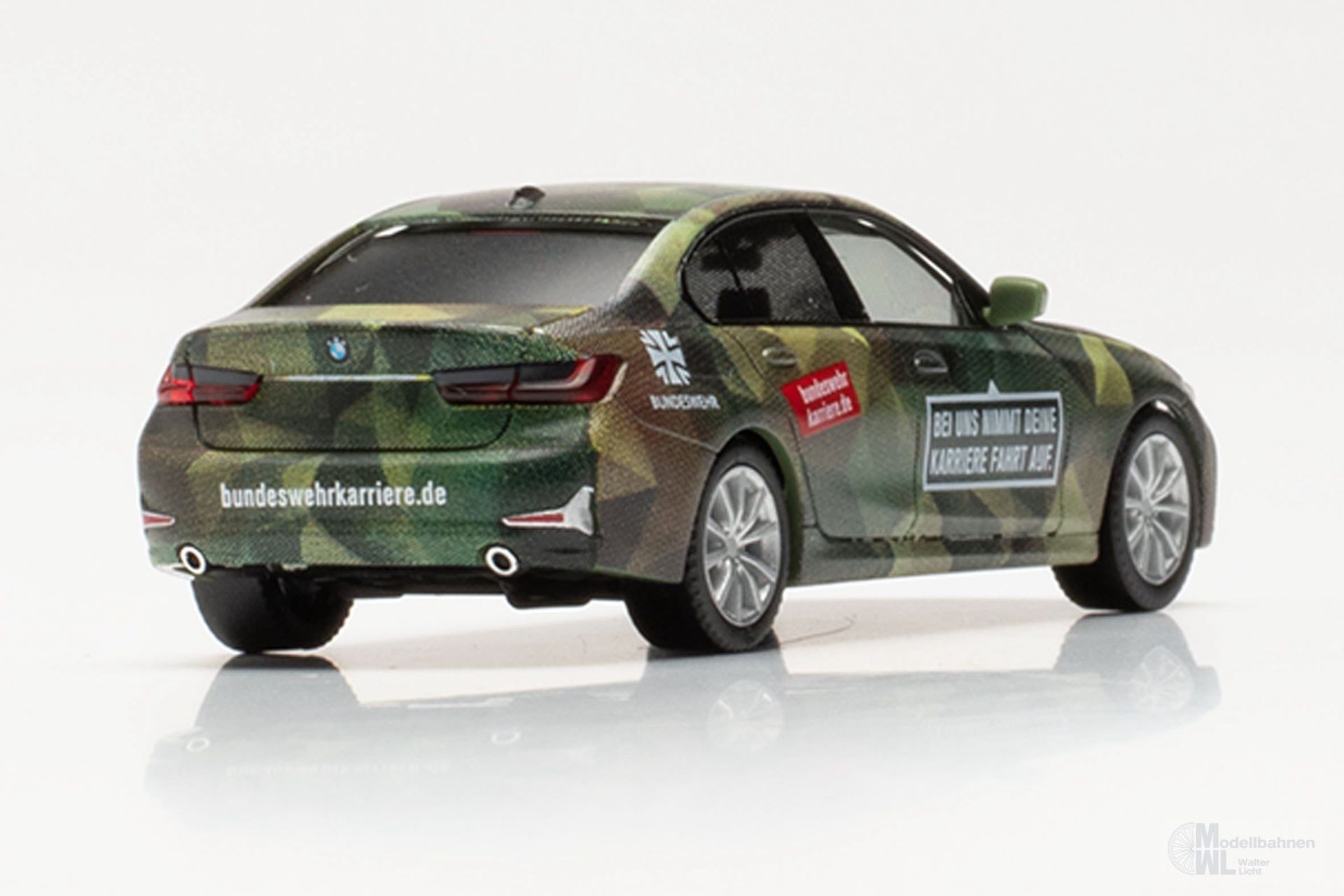 In dem Bereich der Personalwerbung setzt die Bundeswehr diese Fahrzeuge der BMW 3er-Reihe ein. Die in einer besonderen Form des Flecktarndesign gehaltenen BMW werben für die Bundeswehr mit entsprechender Beschriftung. Herpa setzt diese außergewöhnlichen Fahrzeuge mit jeweils mehr als 30 Druckvorgängen in einmaliger Auflage als Miniaturmodell um. Maßstab: 1:87