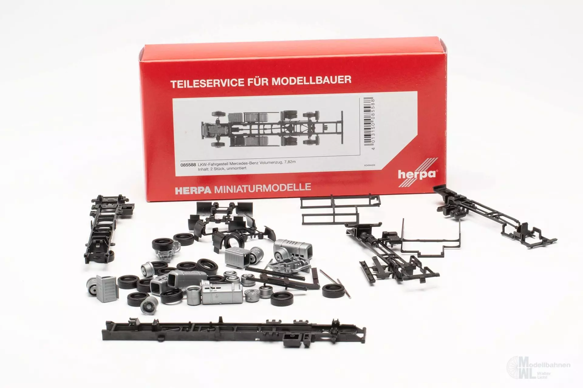 Um gleich zehn Artikel wird der Teileservice erweitert und bietet Um- und Selbstbauern die Möglichkeit Ihr eigenes Fahrzeuge selbst zu gestalten. Die beiden neuen Fahrgestelle für Volumentandemhänger (neue Achsspange, neuer Unterfahrschutz sowie separat gehaltene Kotflügel) sind bereits dabei, passend zum Fahrgestell der Festaufbauten werden auch die Volumenaufbauten unter neuer Artikelnummer (085564 Plane für Motorwagen und 085557 Plane für Hänger) mit aufgenommen. Die Aufbauten für die Wechselbrücken sind unter 081146 verfügbar. Damit die Hänger nicht alleine laufen müssen, gibt es Motorwagen-Fahrgestelle für Scania CR/CS (085571), Mercedes-Benz Actros Giga-/Big-/Streamspace (085588), MAN TGX GX/GM und TGS TM/TN (085595) und Volvo FH Generation 4 und 5 (085601). Mit 085618 ist nun auch die GM-Kabine von MAN für LKW verfügbar. Mit 085625 kann man ab sofort auch den Iveco S-Way ohne Windleitbleche für LKWs verwenden.