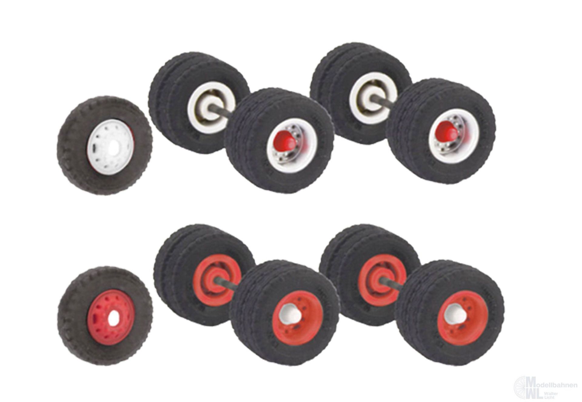 LKW-Sammler lieben auch das Besondere, das Außergewöhnliche. Modellbau Schwarz, steht in der 1:87 Modellwelt genau dafür, feine Modelle, deren Detaillierung über das schon hohe Maß bei Herpa noch hinausgeht. Mit diesem Zubehör Set an Radsätzen, kann man nicht nur Modelle von Modellbau Schwarz ausstatten, sondern auch Herpa, oder andere Modelle im Maßstab 1:87. Dieses Set beinhaltet 2-teilige Zwillingsstahlfelgen für Auflieger mit 10.00-20 Reifen Straßenprofil.
