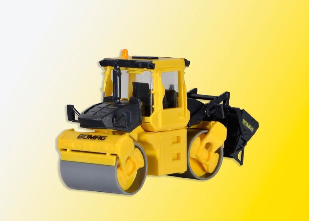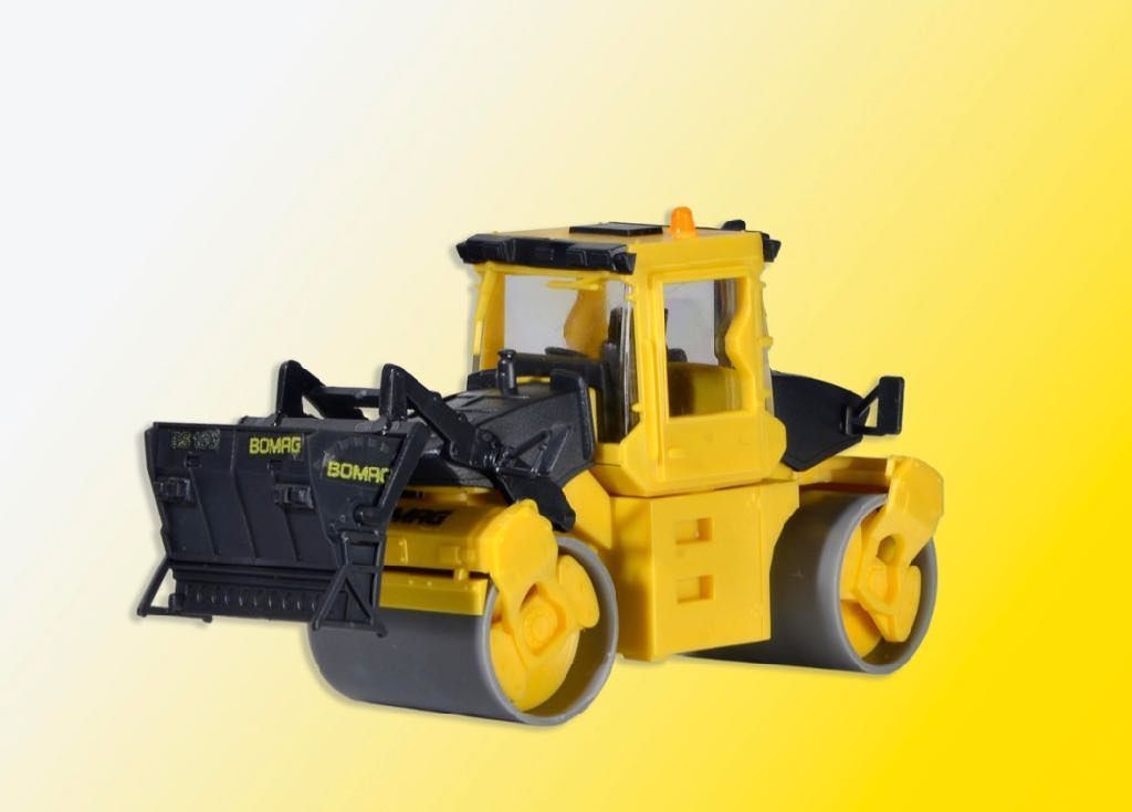 Bausatz. Vorbilddaten: Tandemwalze Typ BW 170 AD, 4 Zylinder Cummins-Dieselmotor 4B 3.3 – C, wassergekühlt, 53 kW/80 PS, Eigengewicht 8 t, max. Betriebsgewicht 9,5 t, Walzenbreite 1,68 m – max. 3 m durch Hundegang, max. Verdichtungskraft 5,5 t je Bandage, Präzisionsstreuer BS 180 mit 1,8 m Streubreite, Behälterinhalt bis zu 900 l. Im Viessmann Sortiment auch als Funktionsmodell Art. 21558 erhältlich. Maße: L 6,5 x B 2,8 x H 3,8 cm. Schwierigkeitsgrad: 2 (Fortgeschrittene).