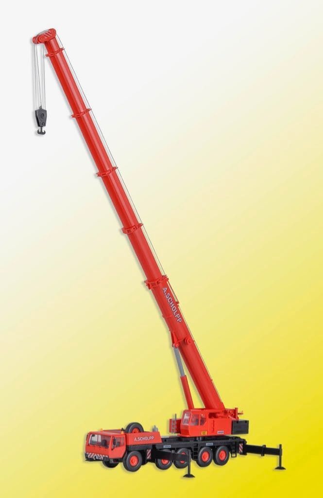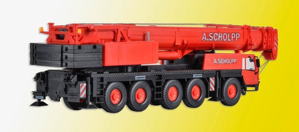 Bausatz. Vorbilddaten: 5-achsig, max. Traglast 160 t, max. Hubhöhe mit Klappspitze 96 m, max. Ausladung mit Klappspitze 74 m. Dieser Autokran zeichnet sich durch eine Anzahl von Leistungsprofilen aus, die das Gerät zum Marktführer seiner Leistungsklasse machen. Das Fahrzeug wird von einem 400 kW/554 PS starken LIEBHERR Turbodiesel angetrieben. Dadurch wurde der Kran kompakt, wendig und gewichtsoptimiert. Herausragend ist der 6-teilige Teleskopausleger. Das ovale Auslegerprofil ist besonders formsteif und deshalb äußerst stabil. Der Ausleger ist 5-fach teleskopierbar, weshalb ohne Anbauten eine Rollenhöhe von 60 m erreicht wird. Maße: Fahrstellung L 17,5 x B 3,7 x H 4,6 cm, ausgefahren L 15,8 x B 14,5 x H 41 cm. Schwierigkeitsgrad: 3 (Profis).