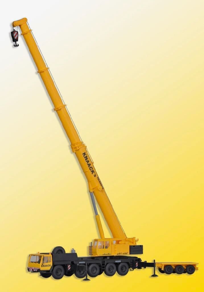 Bausatz. Mit Wippspitze KNAACK. Maße: Fahrstellung L 24 x B 3,8 x H 4,6 cm, ausgefahren L 15,5 x B 14 x H 43 cm. Schwierigkeitsgrad: 3 (Profis).